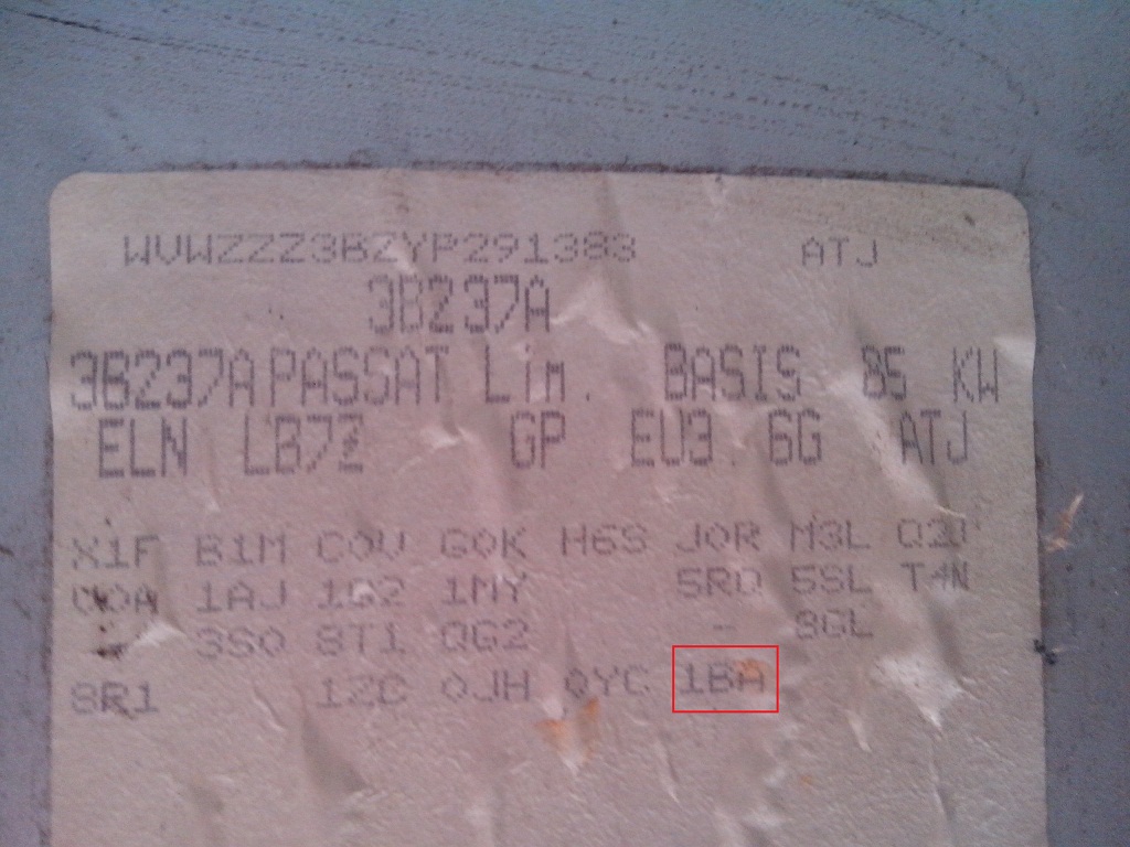 1BA ( 1БА) е един от многото кодове за вид окачване , сравнително често срещано , означава "стандартно", нормално окачване. Една тема http://www.vwclub.bg/forum/viewtopic.php?f=6&t=404340 има и други .
