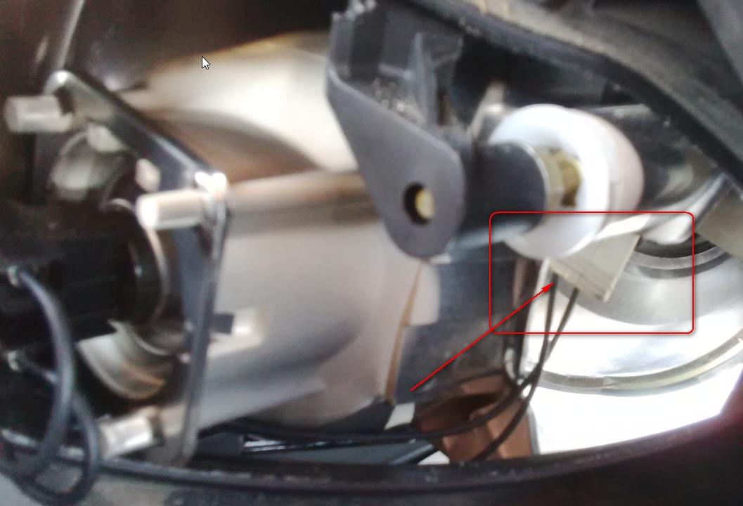 Успях да направя няколко снимки на левия фар. От снимките много добре се вижда габарита, eто това ограденото в червено трябва да се натисне леко на долу и след това да се издърпа назад. Надявам се така вече да се ориентирате.