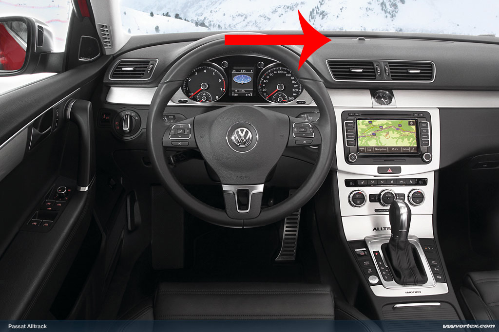 Благодаря колега за съдействието, до колкото разбирам става въпрос за този датчик: http://www.audivw24.de/eng_pm_SUN-SENSOR-VW-PASSAT-B7-3C0907539C-16437_1.jpg -- той се намира посредата на решетката.