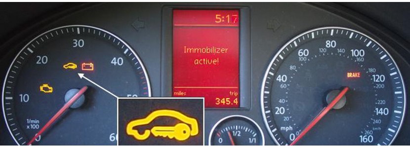 Ако свети с останалите (АБС , ЕСП , Енджине , лампата за течност на чистачки и т.н. ) разместил си ампулата която се намира в патрона за палене , при сглобяването . Същия проблем съм имал и го реших така : Задължително е таблото ( километража да е вързан , без него няма да запали автомобила) , след което взимаш оригиналния ключ (не дубликат) , наместваш ампулата - понякога малко завъртане и трябва , чистиш грешките с ВАГ-КОМ ( чистят се АБС , ЕСП и всичко лампи , но не и имобилайзера ,ако е разместена - по това ще разбереш дали иска наместване ) . Последното което направих преди да запали автомобила - отворих капачката на резервоара и я оставих отворена и тогава завъртях ключа и автомобила запали . Късмет !