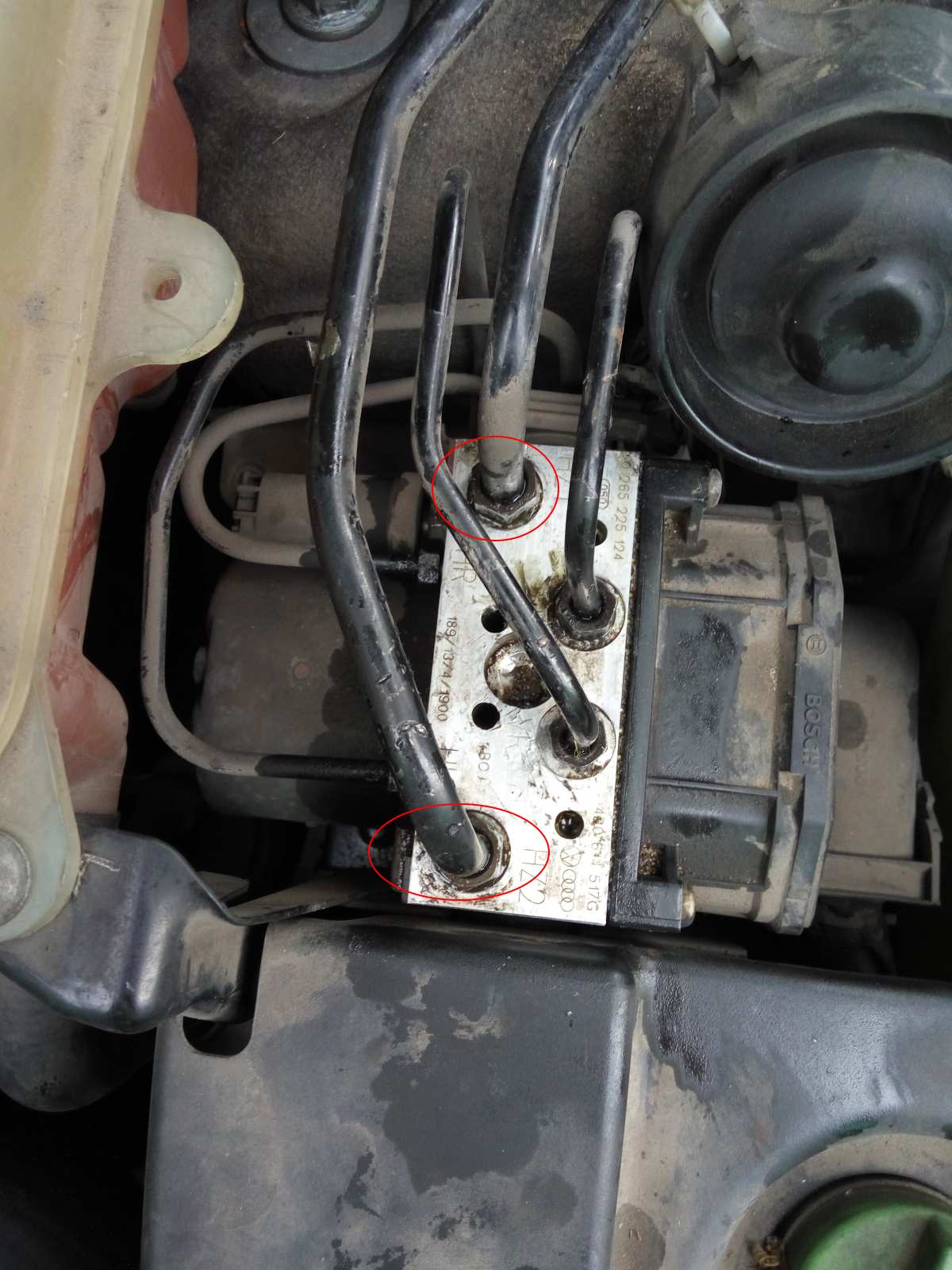 Опънах ръчната, с ключ 13 изпуснах налягането от двете по-дебели тръбички към ABS-а. Апаратите освободиха, но педала остана в долно положение...минах няколко км, и отново ми се наложи да натисна спирачки...съответно пак блокираха, карах така известно време, докато не намерих къде да отбия и да не преча на трафика...позагряха малко спирачките. Освободих отново въпросните тръбички, апаратите освободиха, изчаках ги да изстинат и се прибрах без да ползвам спирачки.