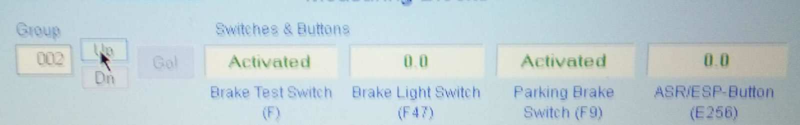 Когато регулирах нивото на педала ( от дължината на щока на сервото) го регулирах само гледайки кога светват стоповете, без да ползвам VAG-COM-a - грешка! Карайки малко колата излязаха разни съобщения ( прикачени снимки), като проблема е в това, че като се върне педала, все още оставаше сработил сигнал "F" за натиснат педал на спирачките към ECU-то. Излизаше ми "ENGINE WORKSHOP" с мигащ накал и колата едва вървеше. След регулиране на F-switch-а нещата заспаха :).