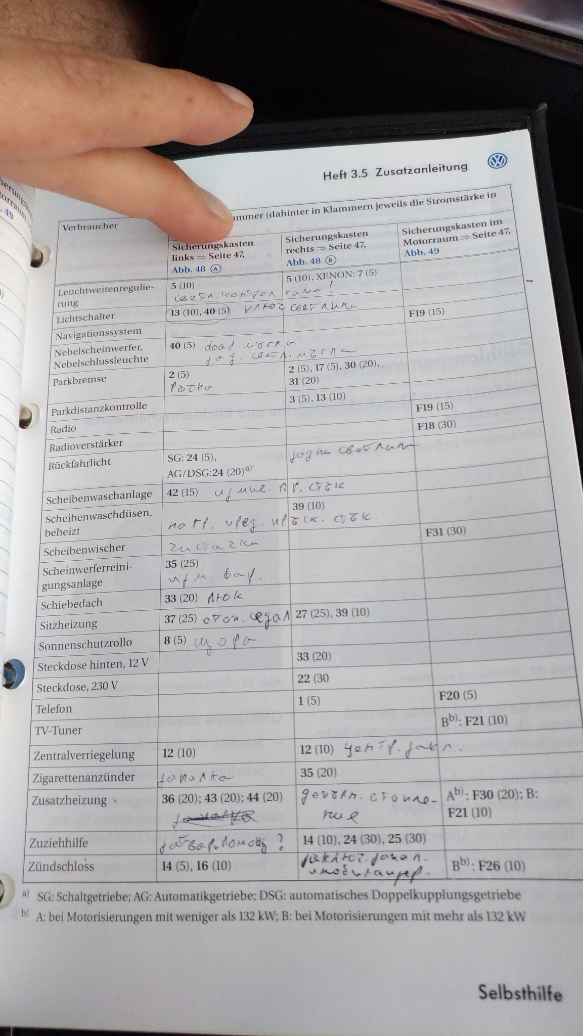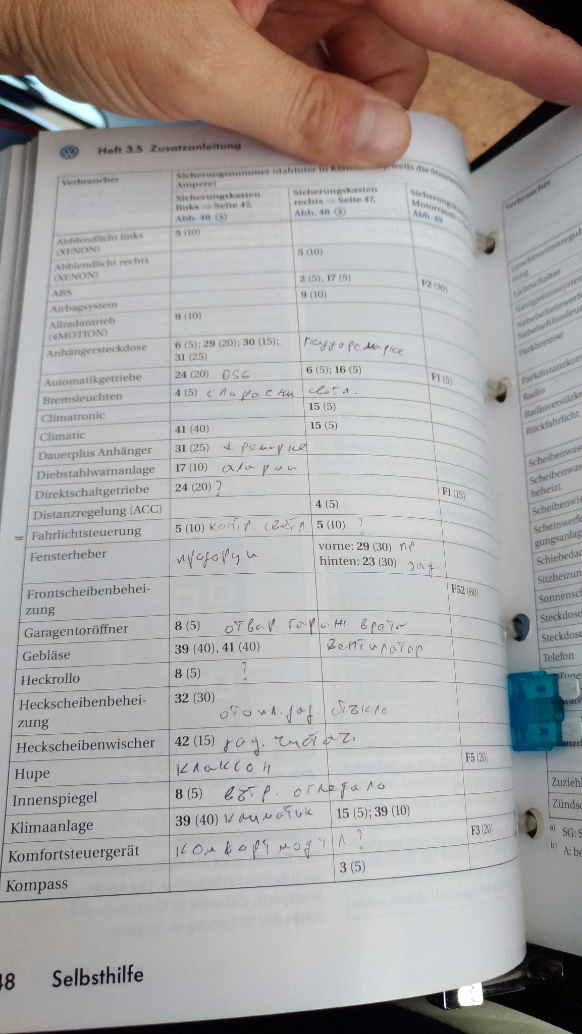 Тъй като продължавам да не откривам решение на проблема, реших отново да пиша. Вчера се сетих да прегледам бушоните, да не би да липсва нещо - кога да погледна - та то има 10-15 бушона на кръст... Търсих схема на бушоните на B6 в интернет, но не успявам да я открия. Ако някой я има, или преведена, или ако има желание да я преведе, да я публикува, за да си решим с колегите доста от проблемите...