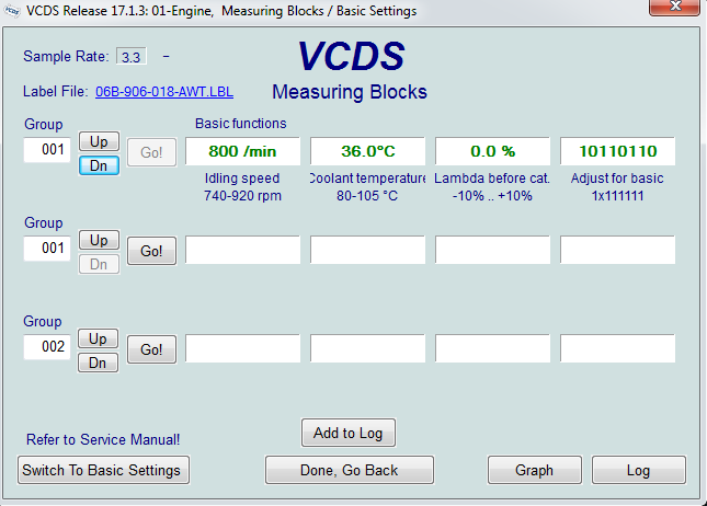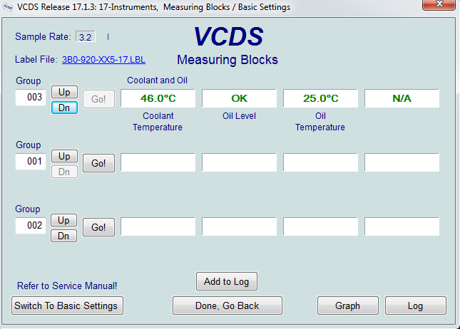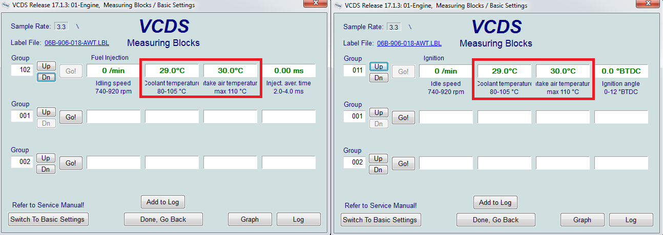 Здравей! Днес пуснах VCDS да видя какво дава в Engine -> Meas. Block -> Group 001 за температурата на антифриза и направих скрийншот, който е прикачен към мнението.