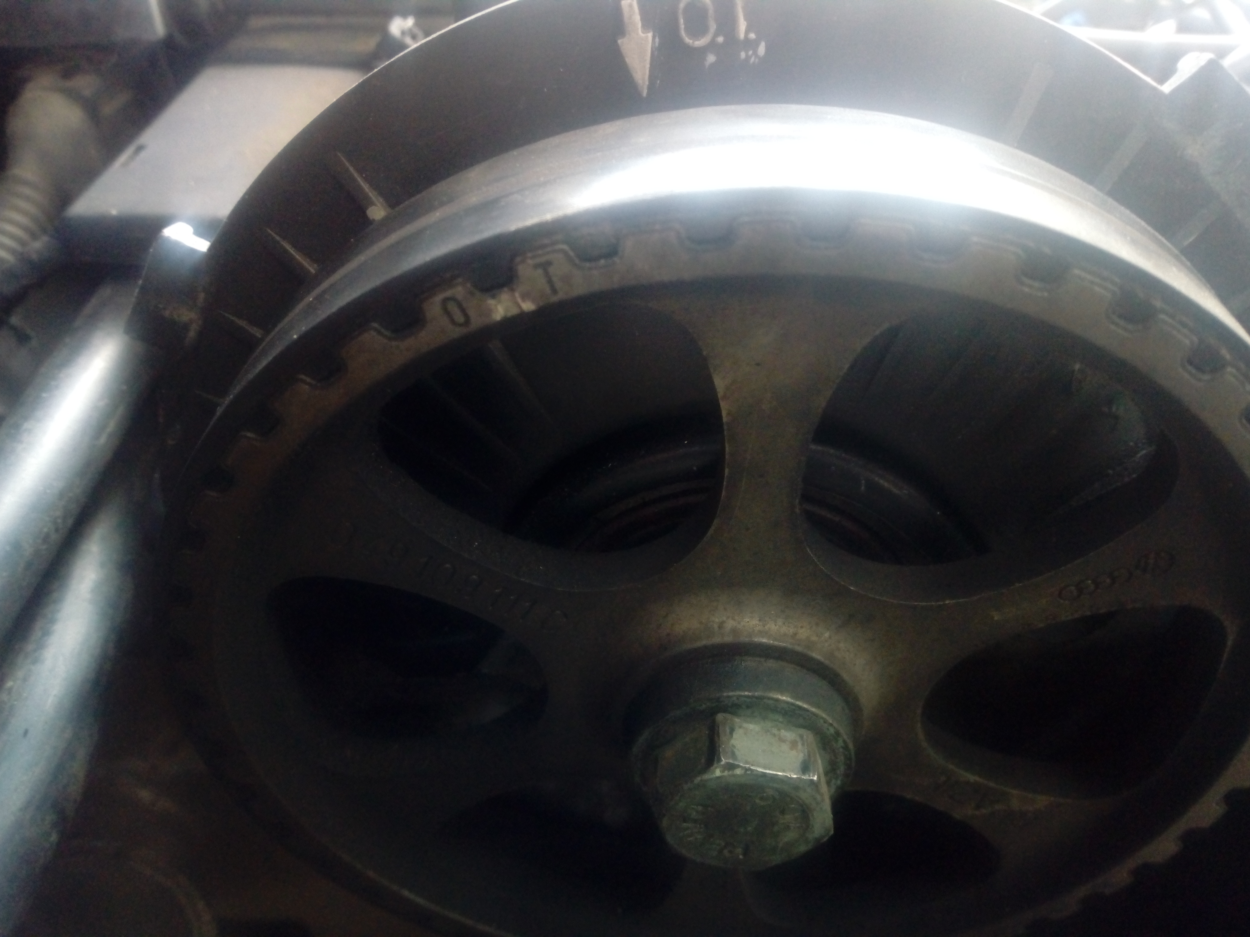 Намерих белег на маховика,но се разминава с този на шайбата и разп.вал.Ако се гледа маховика другите два белега бягат с 2 см.По кой да се водя и ще е по—верния?
