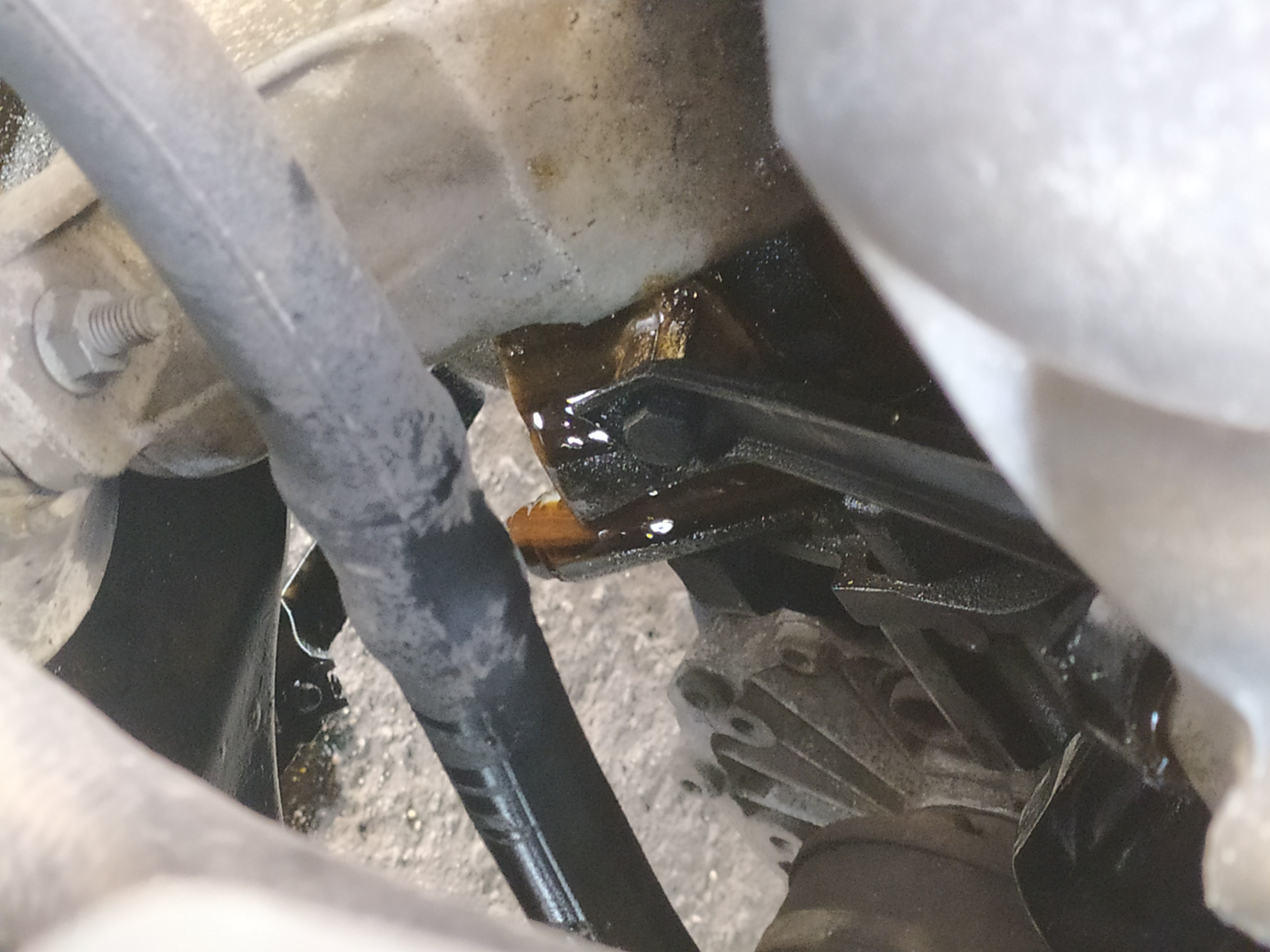 Имам въпрос за следната ситуация: с Пасат Б5, 1997, 1.8 бензин/газ съм. Последно бях карал колата преди 6 дена и всичко беше точно, масло не гори изобщо. Вчера обаче като я запалих, изчаках както обичайно 2-3 минути да поработи на място и тръгнах. След няма и 20 метра усетих, че нещо не е наред, спрях, чуваше се нещо като бълбукане/съскане и видях, че е изтекло доста двигателно масло. Може би е важно да се отбележи, че като я запалих навън беше минусова температурата и предните нощи е стигала до -10. Като я загася, спира да тече. Днес я запалих за няколко секунди да видя какво става и започна да тече яко пак, направих снимките, ама честно казано не разбирам много и не знам откъде идва течът, някъде под двигателя е от дясната страна.