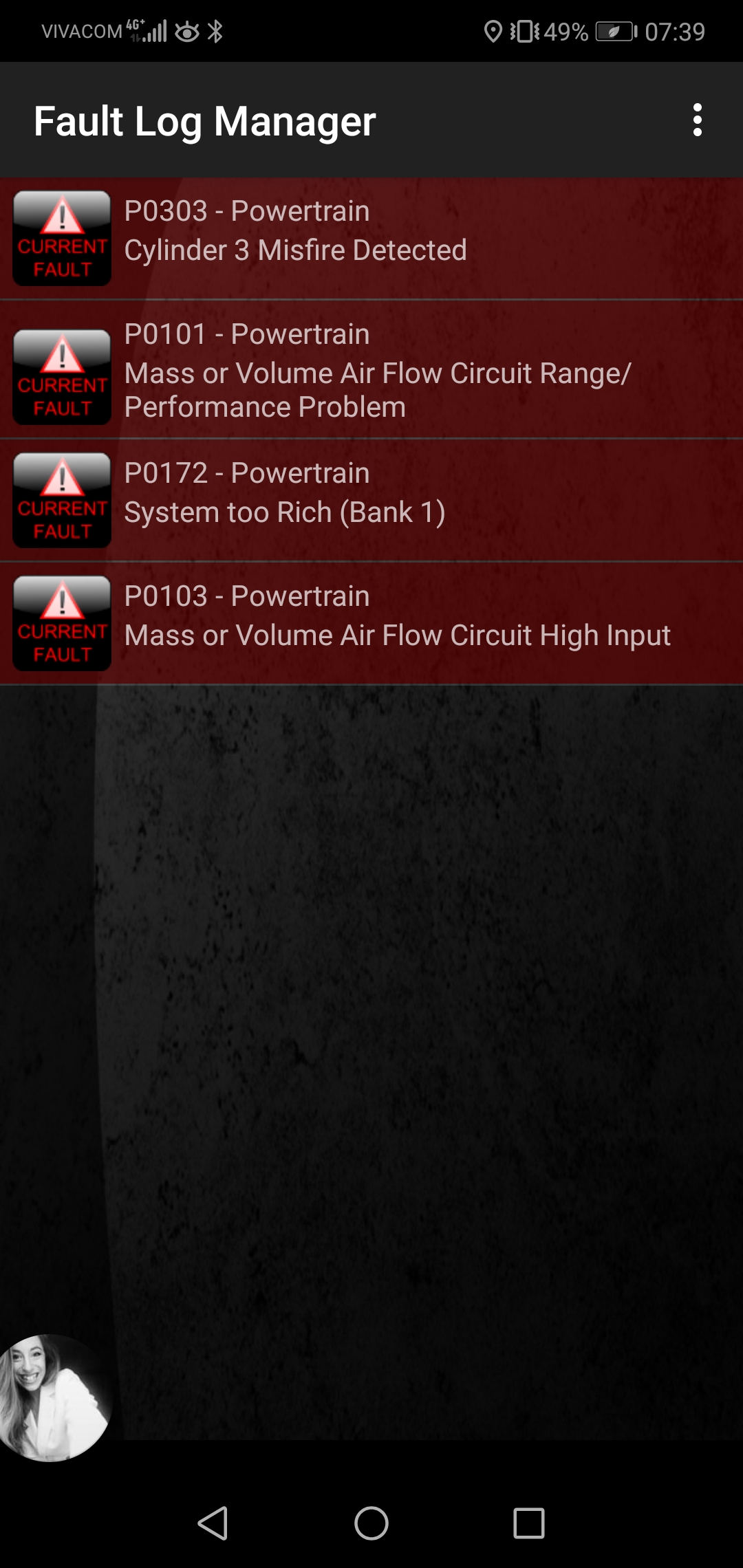 Трите жълти лампи светват при misfire в някой от цилиндрите.