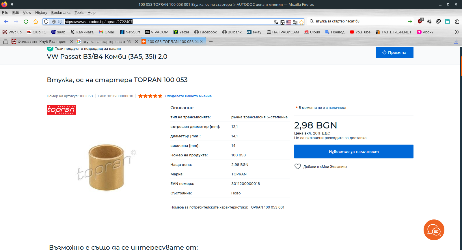Голф и пасат от тия години нямат много общо в областта на скоростната кутия и стартера. Ето втулка за стартера на пасат Б3 https://www.autodoc.bg/topran/2722407
