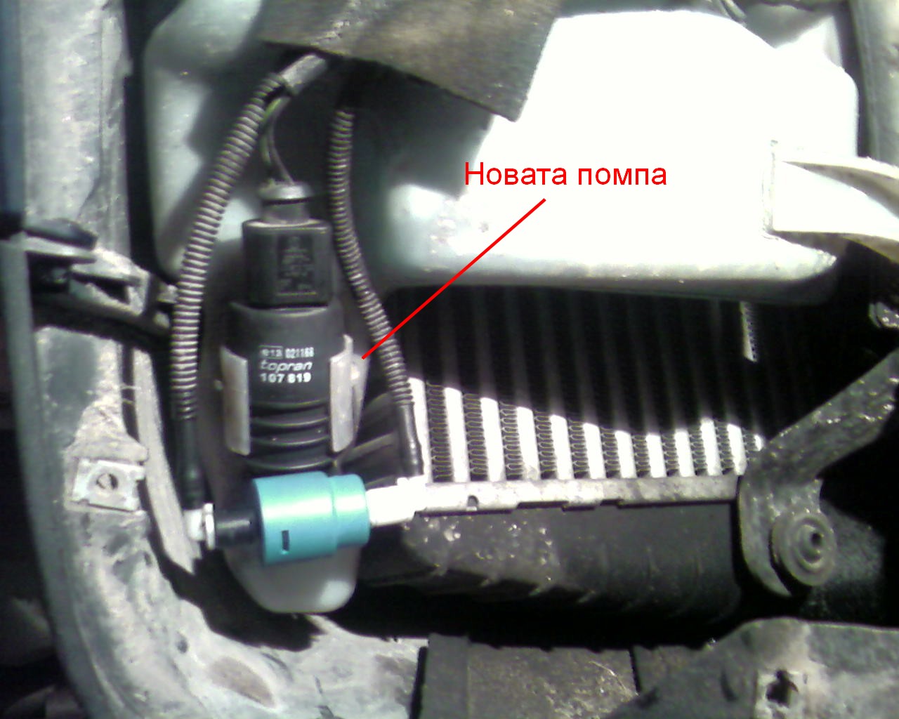 На снимката се вижда къде стои помпата- когато е свален подкалника...