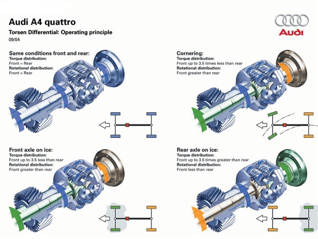 Здравейте.Четах много статии за торсен диференциал обаче много много не разбрах за тази механика,пак като обикновенния дефиринциал работи или кво,пак се прилага повече сила на тора колело което се върти по-лесно (на лед)или......какви са тези "червячни предавки" само на коли с задно и предно предаване ли се слага този дифиренциал или може да се сложе и като е само с задно или предно предаване.Благодаря.