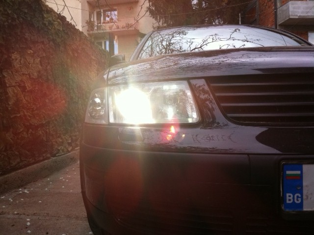 Колата е Б5, фаровете са Депо с ангелски очи, черни, светлината е от ксенон 6000К на Lux.Pro. На дългите съм с OsraN NightBreaker и буквално са жълти пред ксенона. За видимостта съм предоволен, особено ако карам на максимално вдигнати фарове извън града ми стигат само късите. Иначе самите фарове си имат недостатък. Прекалено много трептят по дупките. Иначе не ми се оросяват нито зима нито лято. Като цяло съм доволен от комбинацията. Да вметна нещо - ксенона от ниския клас препоръчвам да се пали 10-15 секунди след запалване на двигателя, понеже изисква голям стартов ток, а акумулатора се изтощава от паленето и като се пуснат веднага фаровете, ксенона трепти неприятно докато загрее.