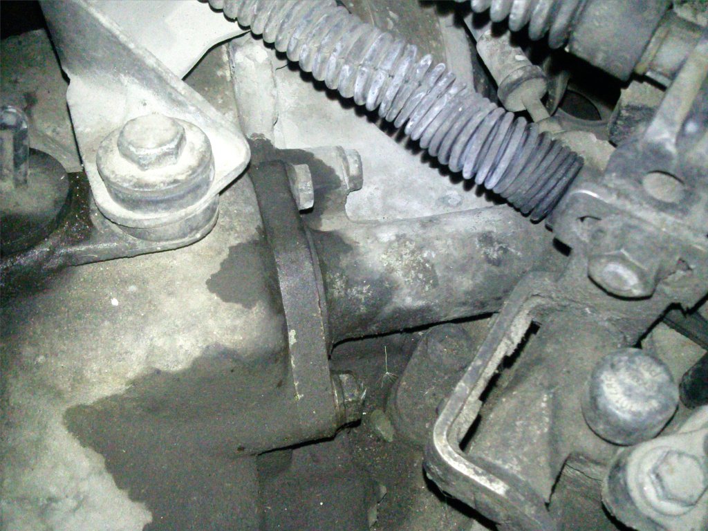 Проблемът е в долната помпа на съединителя - тя е закачена с два болта на горната страна на скоростната кутия близо до жилата. Просто изпуска и скоро при натискане педалът на съединителя ще остане долу и няма да се върне (това за информация - да не се чудиш какво става). Помпата вече е изминала предвидения си пробег и е започнала да изпуска. Вариантите са два