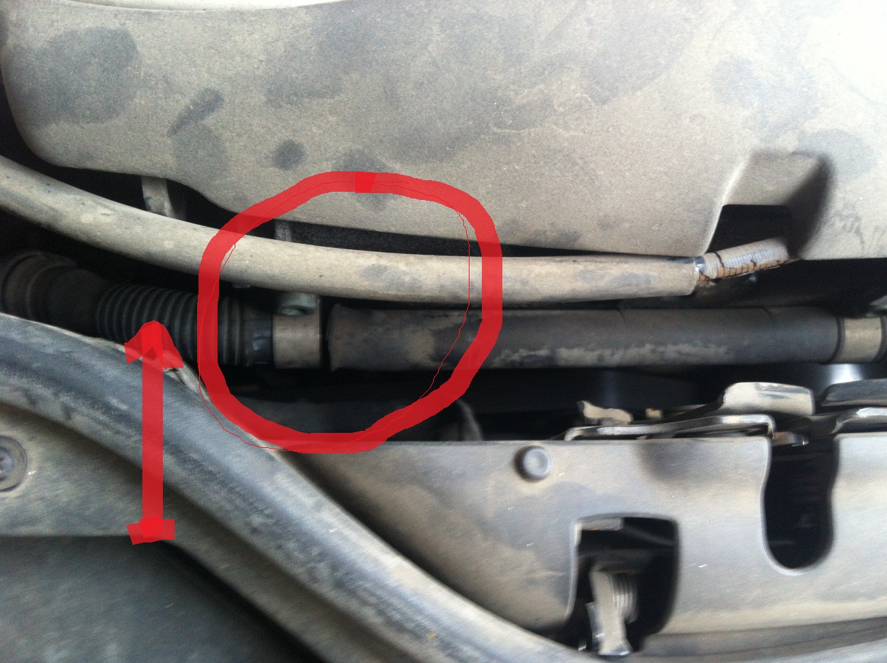 В неделя до като сменях въздушния филтър на колата забелязах че въпросната /гофрирана алуминиева / тръба е откачена. Пъхнах я в скобата но тръбата излиза свободно. Направих снимка. Тръбата се намира от предната страна на двигателя.