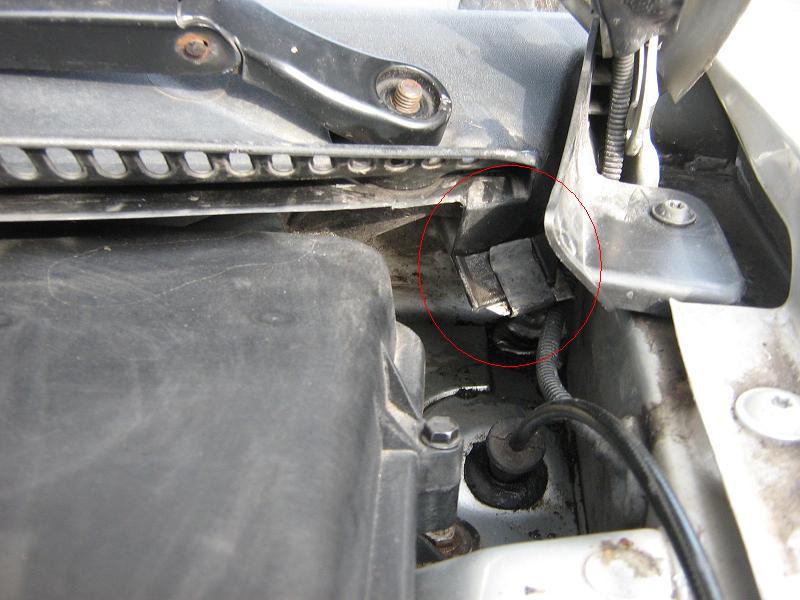 3. Премахваме малката пластмасова кора под чистачките. Тук видях малко зор а то било мн. просто и лесно. Кората се държи на две щипки, в средата и в края където е кутията на компютъра (шофьорската страна). След което кората излиза вертикално на горе, като също е желателно да се започне от някой от краищата и. Не се дърпа на пред или на зад! Само на горе. Излиза лесно. Идеята е да получим достъп до кутията на компютъра, кутията на филтъра и отводнителните канали.