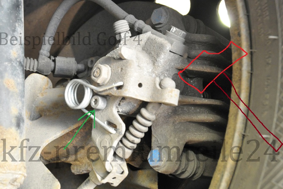 Ръчната спирачка не спира задното ляво колело. Блокирала е в отпуснато състояние. Т.е. не прави проблем при движение, но не работи ръчната на това колело. Става дума за това лостче на снимката което се задвижва от жилото. Много е спечено. С нормалния чук не поръдва в никоя посока. Жилото се движи свободно, не е в него проблема. Тъй като не знам как точно е устроен механизма на това лостче ме е страх да чукам с 2-килограмовия чук силно. Ако някой може да каже ще се нанесат ли щети ако се чука силно какво може да се повреди и тн. Съшо така това болтче знаете ли за какво е което е със зелената стрелка - само ограничител на хода ли е?