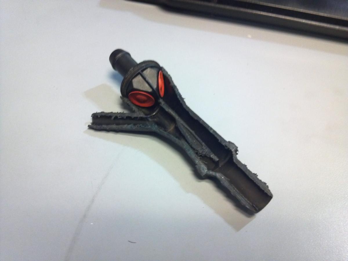 Колеги наскоро въпросната част се беше счупила/отворила в частта си където са оранжевите гумени мембранки/най-точно на щуцера отгоре където влиза маркуча/. Временно я залепих/доста прилично стана/, но самите мембранки липсваха. По-скоро бяха останали малки парченца от тях.