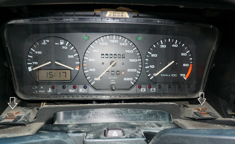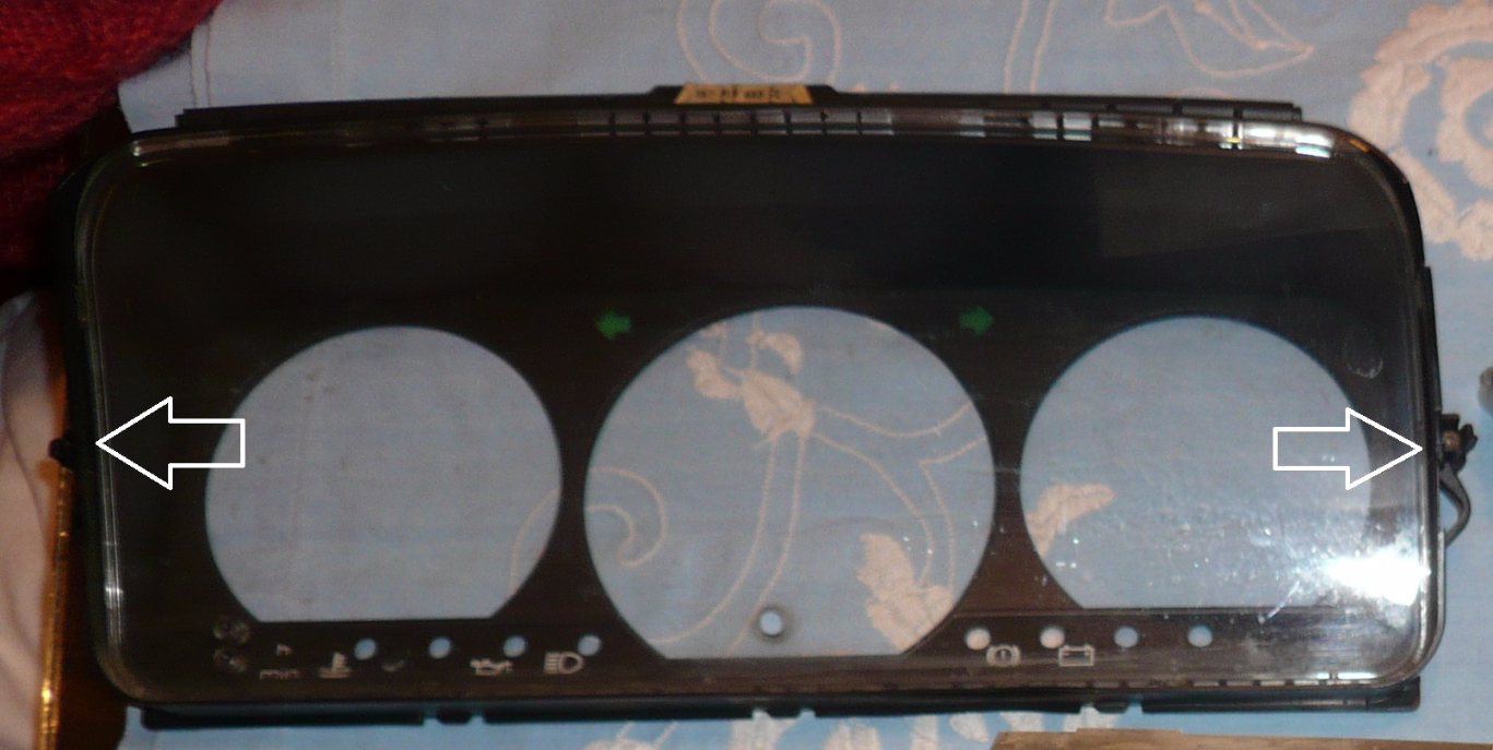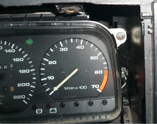 На снимки 3 и 4 виждате винтовете който държат таблото , развивате ги и го дърпате към вас. Жилото на километража сам излиза, а куплунга с кабелите го вадите с лявата ръка, като първо издърпвате таблото навън и в дясно, колкото да си прокарате ръката. Малко неудобно ама става.