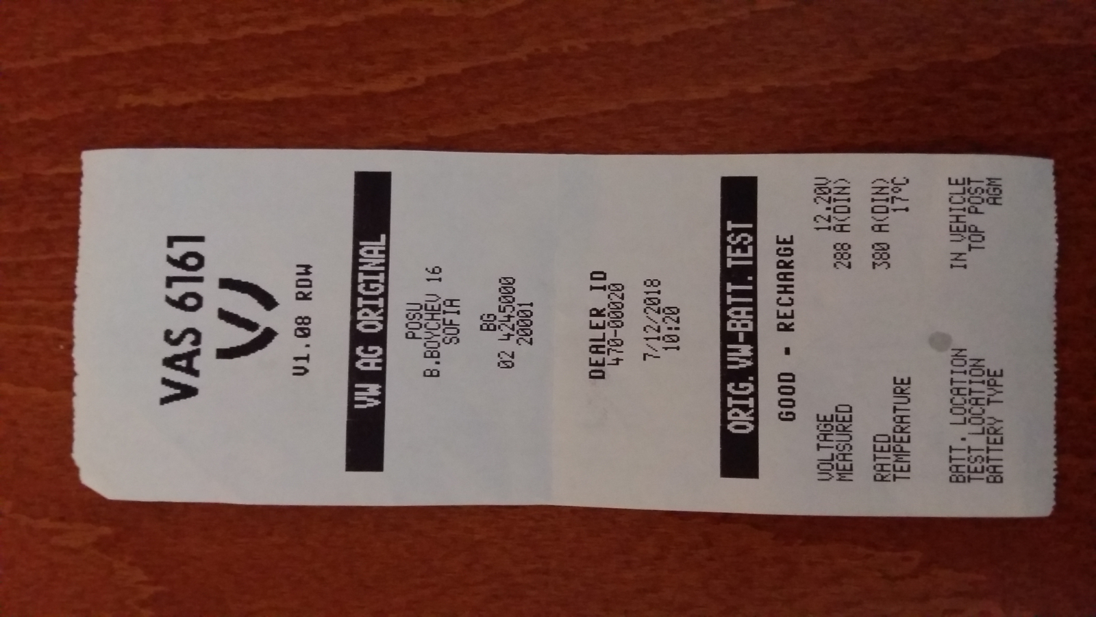 Здравейте,колеги. От месец съм собственик на Пасат Б7, 140 к.с. , дизел, DSG, 2014г. Тъй като това ми е първи автомобил от марката, още някои неща не са ми ясни. Търсих в стари теми отговор на моите проблеми, но не намирам нищо, което да се връзва. Та моля ви за съдействие. На третия ден още забелязах, че старт&стоп системата се включва доста рядко, а в един момент изобщо отказа. Тъй като ми предстоеше обслужване, помолих в Порше да обърнат внимание на акумулатор и системата като цяло. Излезе, че не е за смяна , а за зареждане. Според тях генератора и алтернатива са ок. Интересното е, че след посещението и без да е зареждан акумулаторът, старт-стоп системата започна да работи отлично, но на място двигателя от време навреме е на 1000 оборота. След потегляне и изминаване на метри при следващо спиране ( на светофар например) колата си работи нормално - на около 800 оборота. Някой от вас имал ли е подобен проблем и в каква посока да тръгна. Да уточня само, че според Порше така си е ок и няма нищо, което да е тревожно. Само че 1000 оборота за дизел ми идват множко, макар и от време навреме. Прилагам резултата от теста им. Уточнявам, че автомобила е на 77000 км и е от dasweltauto - май може да се вярва, ако това изобщо е от значение. Благодаря за съдействието в аванс. Поздрав