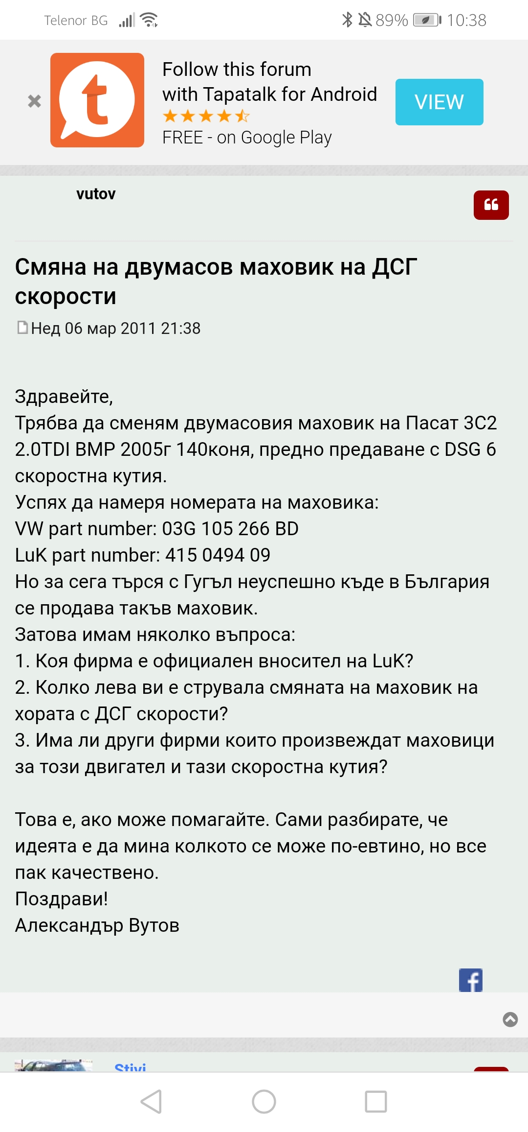 Колко ти искат за маховик и с какъв двигател си?