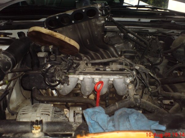 Темата не е от скоро, обаче ... мога с чисто сърце да кажа, АКО някой е тръгнал да го прави сам, пред блока, изобщо ако ей така просто си е наумил ,че трябва да пробва, да види за какво става дума - Колеги , НЕ Се Прецаквайте , ужасно е. Качвам снимки, дано да се различава кое какво е разкачено. Всички бабелаци по газ-та, капака на дроселните клапи... има няма 10 болта с хуууубаво ровене... изобщо 2/3 горната част на двигателя ви трябва да се мръдне назад ( към купето ) и тогава вече да запрятате ръкави и да се почва потенето за ваденето.