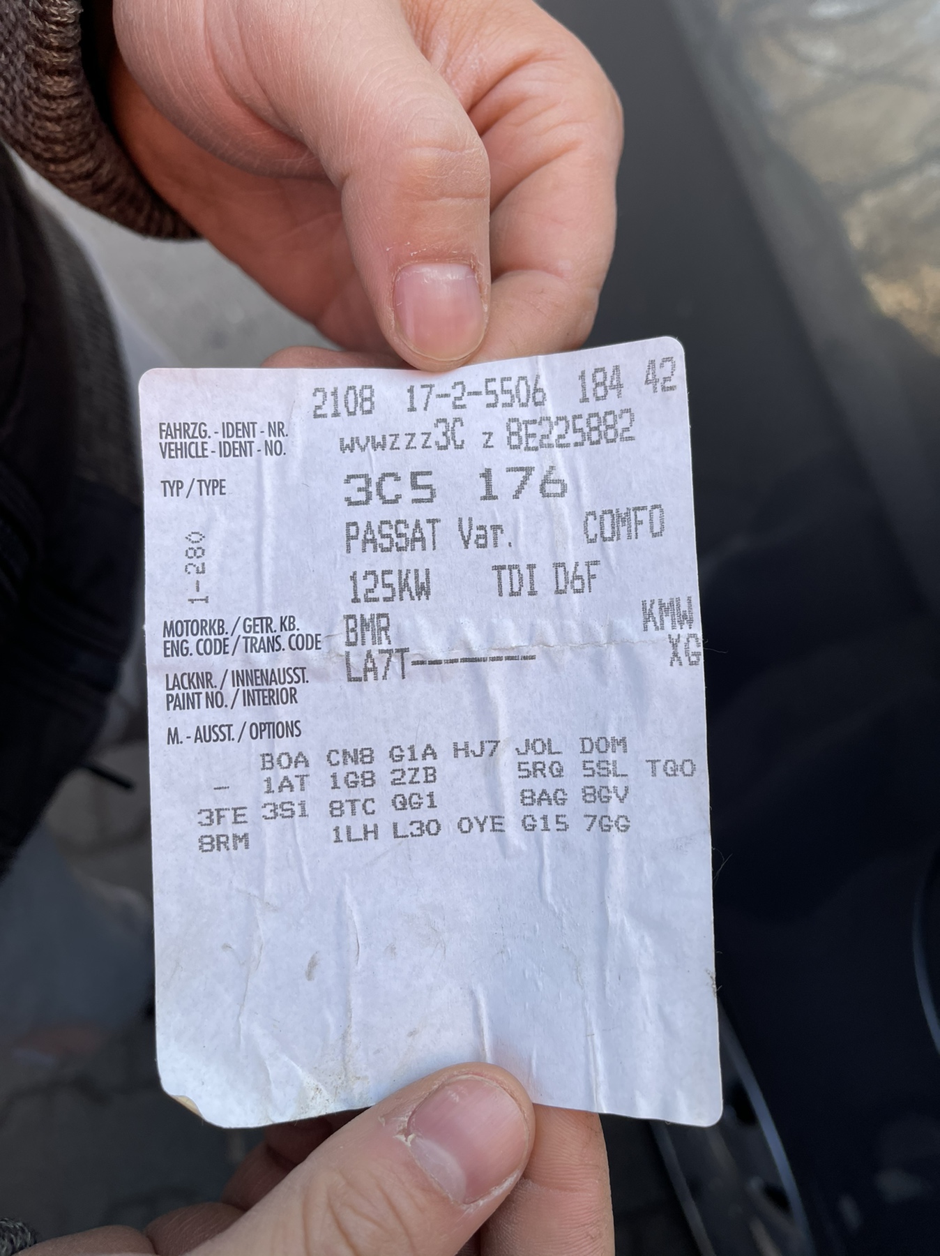 С ВИН номера можеш да го намериш в някакъв сайт от този тип https://volkswagen.7zap.com/en/rdw/