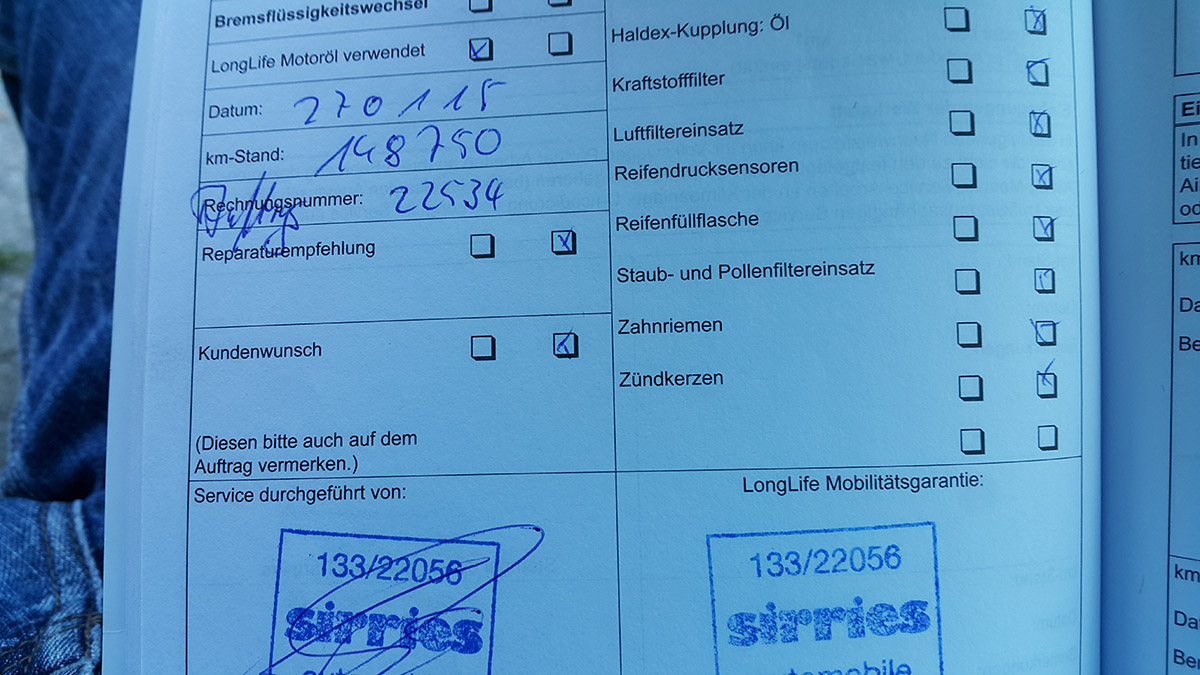 Има сервизна книжка, като автомобила е посещавал само http://www.sirries.de/ -- надявам се да не е наредена сервизната книжка. Колата е взета от http://www.dick-automobile.de/