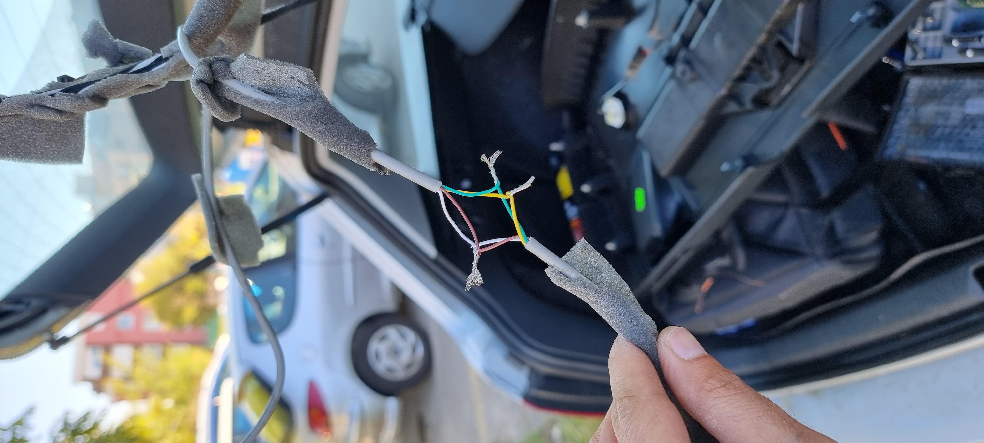 Здравейте колеги, смъкнах пластмасовия панел на петата врата, защото ми течеше течноста за чистачките вътре и открих някакъв сив кабел, който е срязан. Някой има ли идея за какво е този кабел? Свързах го, но не знам за какво е, кжпчетж за багажника на шофьорската врата принципно не реагира при натискане, но и след като го свързах кабела пак не реагира, така че едвали е за това.