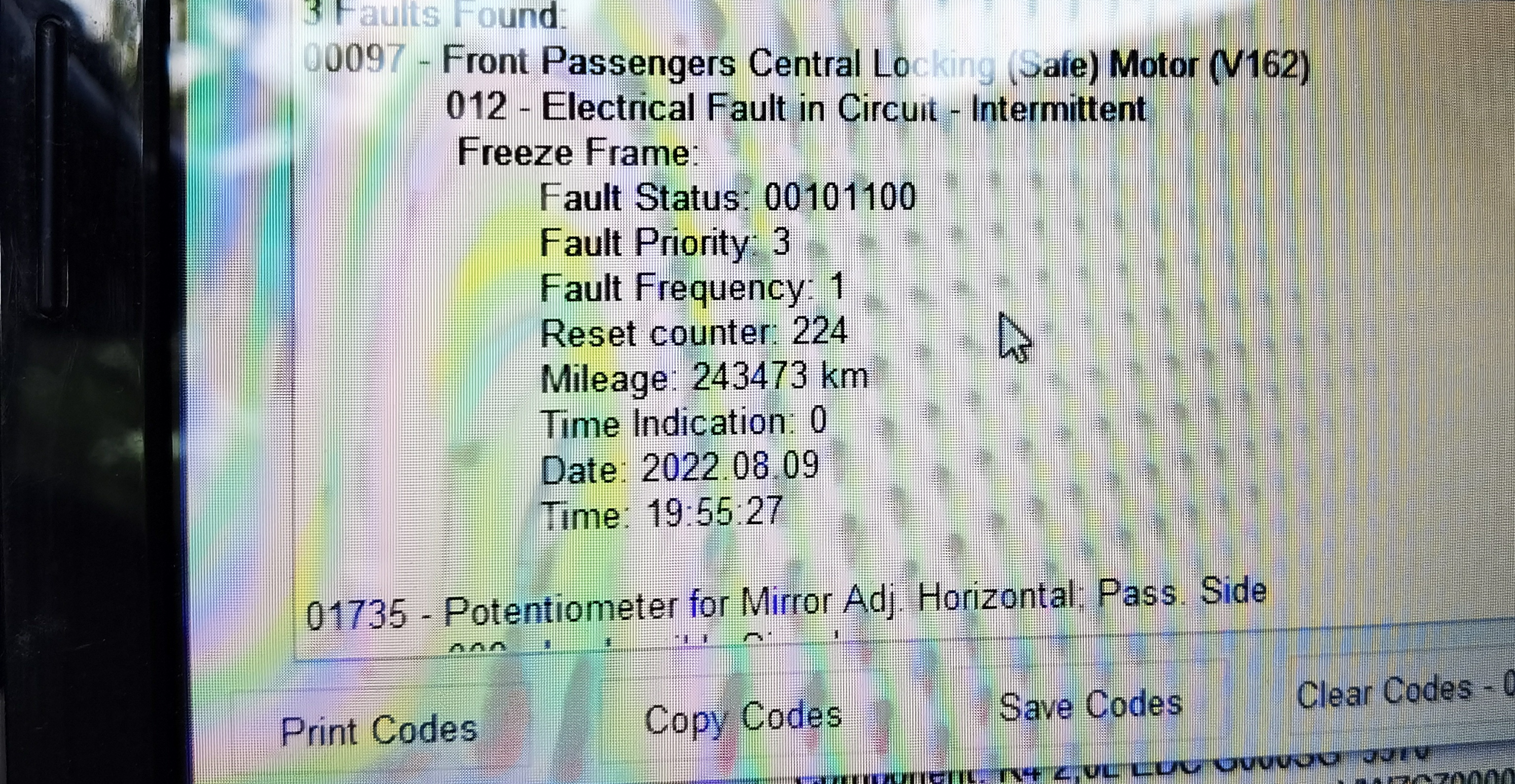 Колеги след като изчезна осветлението на дясната врата на пасата диагностиката изкарва следните 3 грешки: