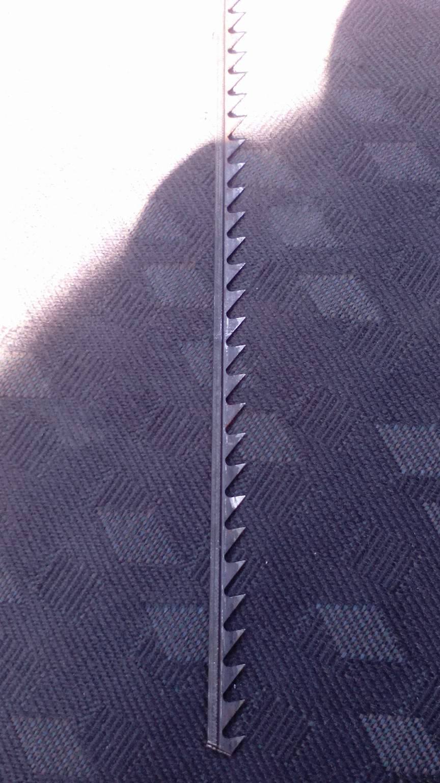 Дърводелските ленти дебели по 2мм.са със много едър зъб,щеще да я познаем ако беше такава.А лентата за плат е тънка тясна и наточена като нож.