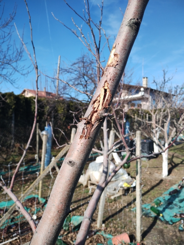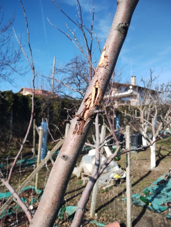 Защитена не защитена - пушките да идват. Днес установих 1 клонче на ябълка засята 2016 г 1 клон от короната на 25 см от короната е надупчен, Срязох клончето от 2 те страни чисти на отреза чисто. Пак има накълвано по изолацията.