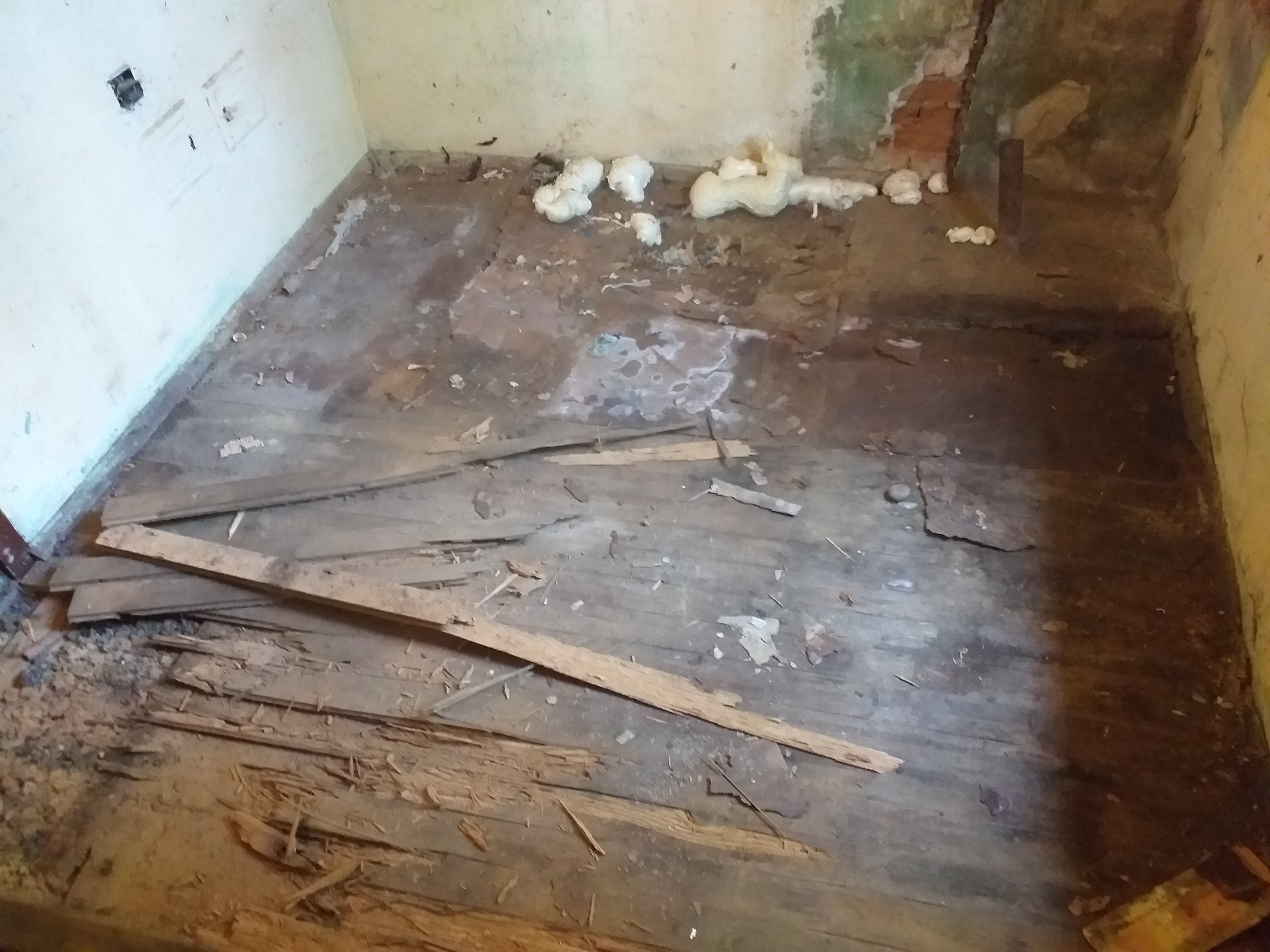 От външната страна на тази стая (кухня) има пътека от бетон. След това е горната стая (спалня) от долната страна на кухнята е антре и баня, като там си върви пътека с бетон, а банята вече е на ниво около 170см във въздуха, реално има лека денивелация на двора. Според мен влагата точно в кухнята се дължи на скапаната мивка, както и на факта, че стаята е северна и с един прозорец, като допълнение може би не е отварян от 20 години.... Също така точно на тази стая с години е текло вода по стената заради запушен улук....Та на това дължа гнилоча на дюшемето. В другите стаи няма и помен от мухал или изгнило, даже на една от снимките се виждат дъските на една от стаите, които са като нови. В останалите стаи дюшемето е тип някакви огромни цели парчета дърво, нямам идея от какво са, но са супер. Върху тях ще се реди ламинат след време със сигурност. Ще снимам разположението на 28-29 да добиете представа.