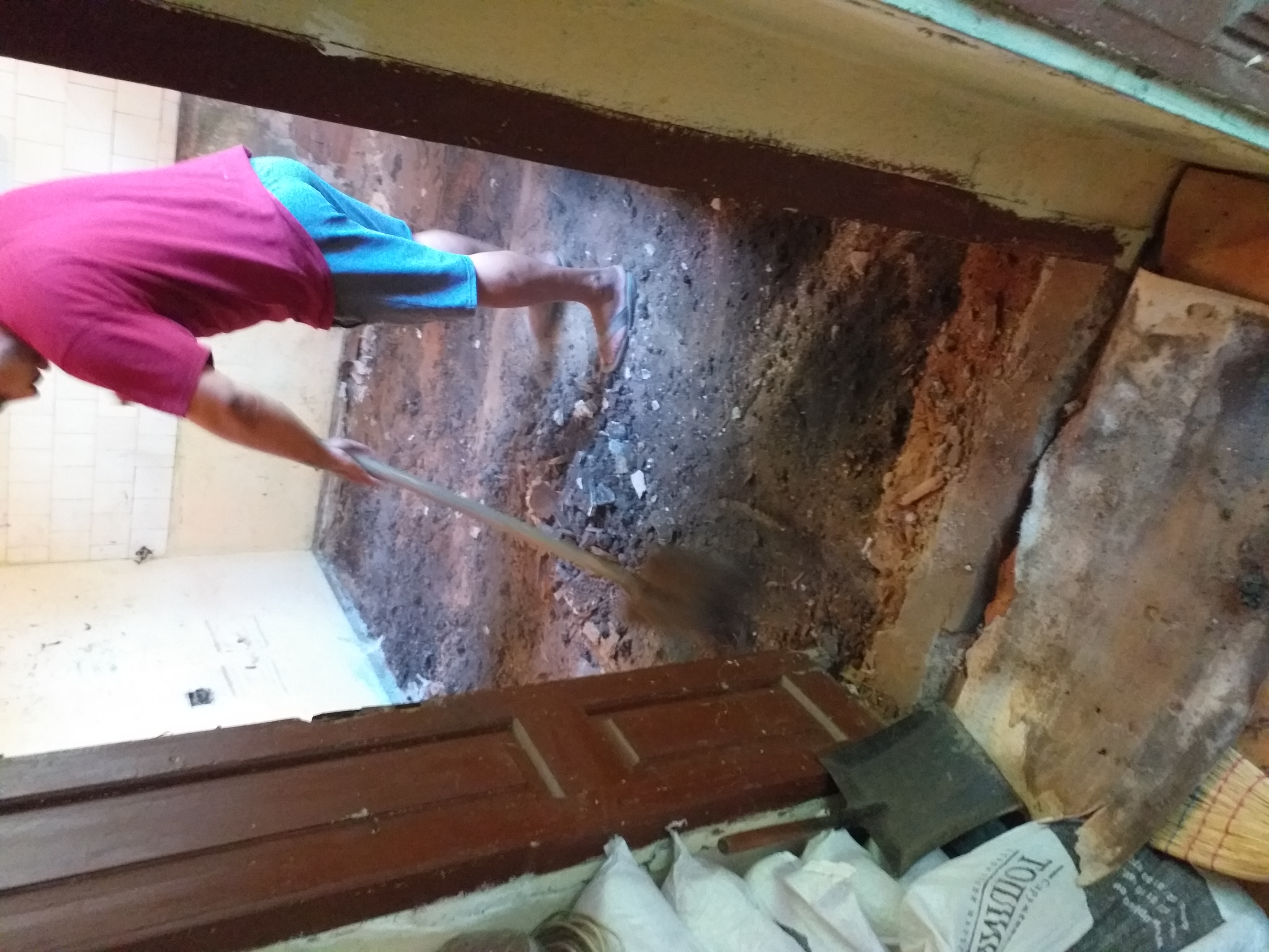 Къщата е частично на две мази, 90 квадрата площ, преди ремонта беше с дюшеме, разкривено и частично изгнило.
