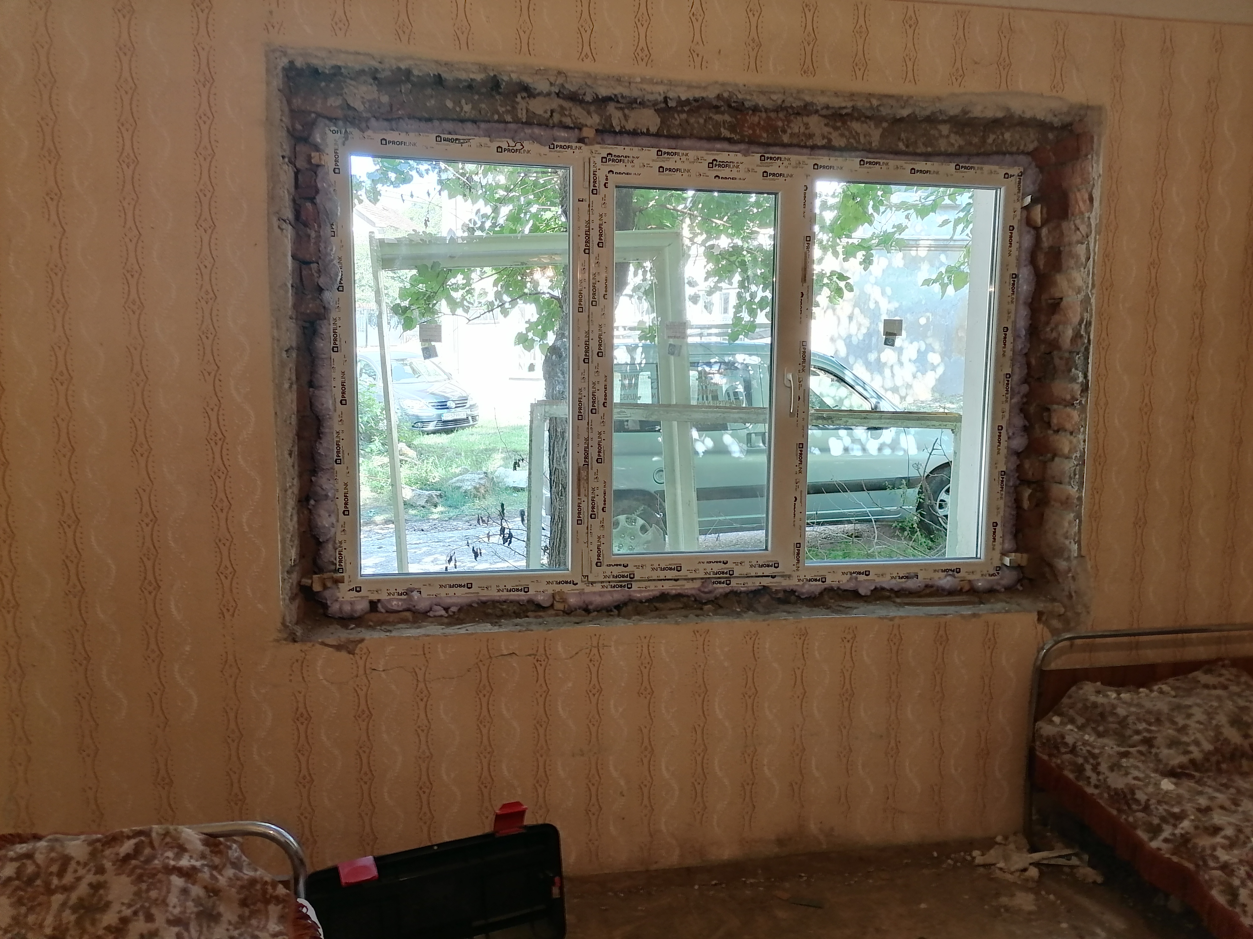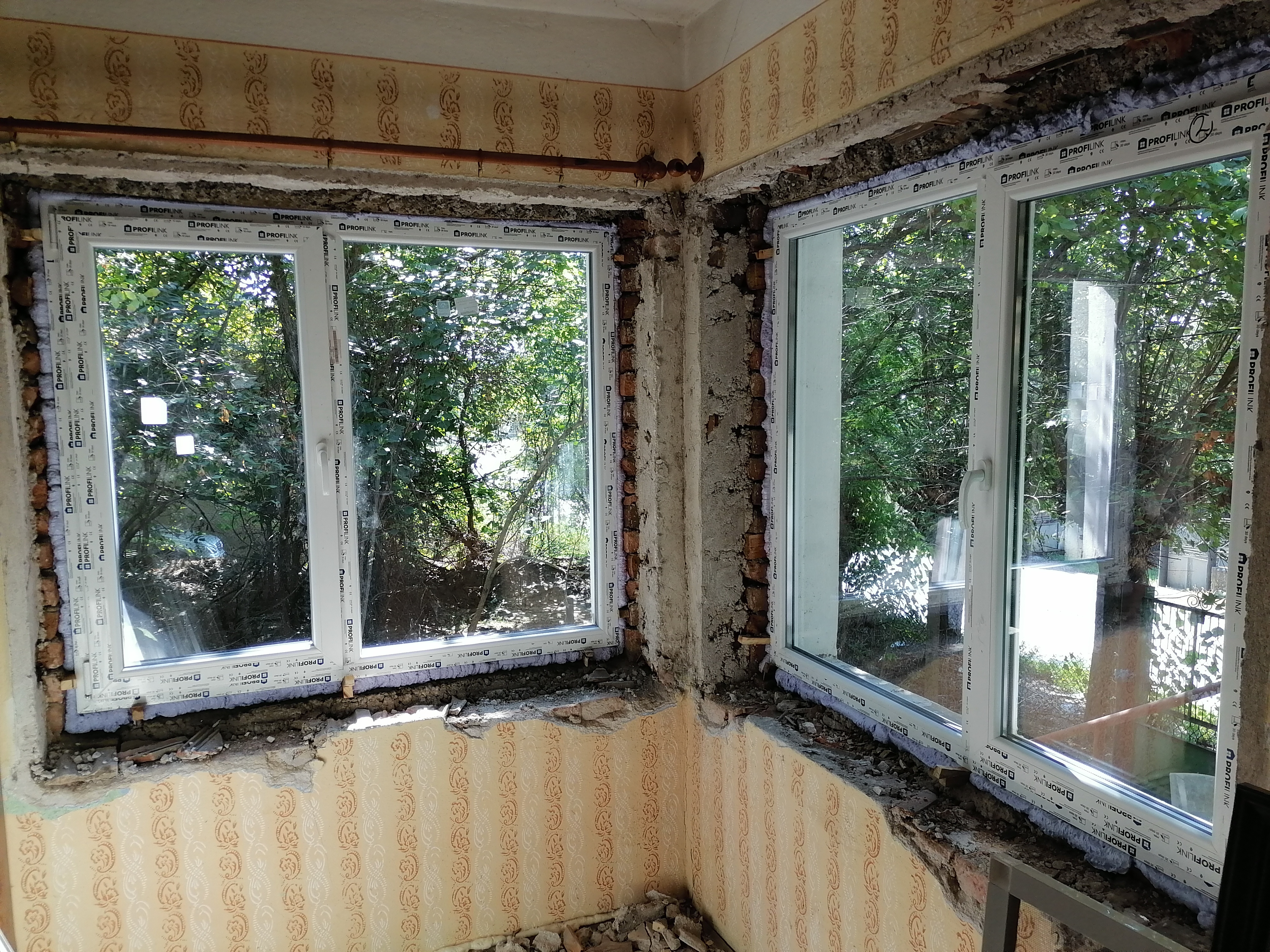 Кухнята е почти готова за латекса и плочките. Оня ден сглобих и самата кухня. Дограмата е сложена, чакам алуминиевите врати за входа и банята.