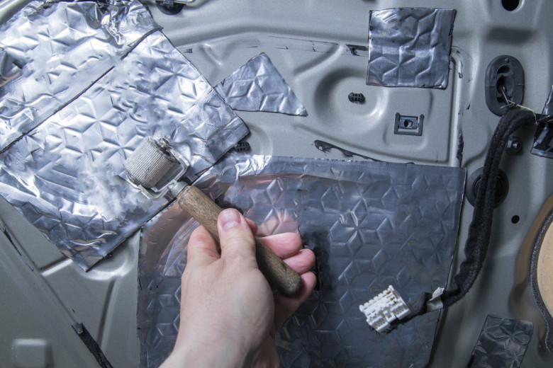 По ламарината се лепи отвътре първо виброизолация на битумна или най-добре бутилова основа.
