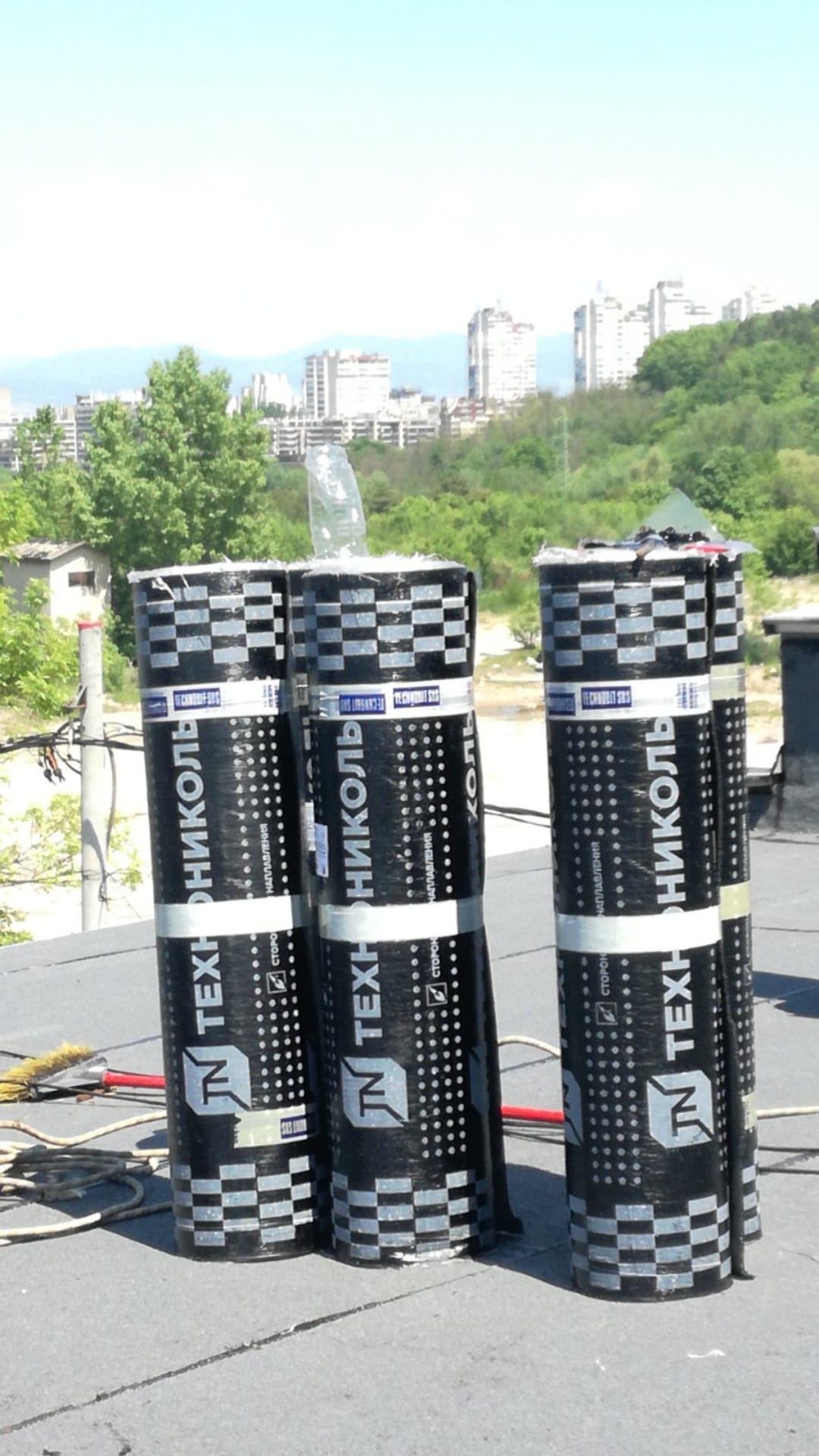 Първите 3 топа с лепят с горелка на бетон,на старите панелки се ползва....маха се фракцията ,почиства се ,полага се битума от варела за основа и запълване на дупки.После с горелката се размеква долната част на рулото и малко по малко се развива и залепва .....идеален материал за изолация на гараж или стар бетонен покрив.Не е приложимо за къща с ламперия.