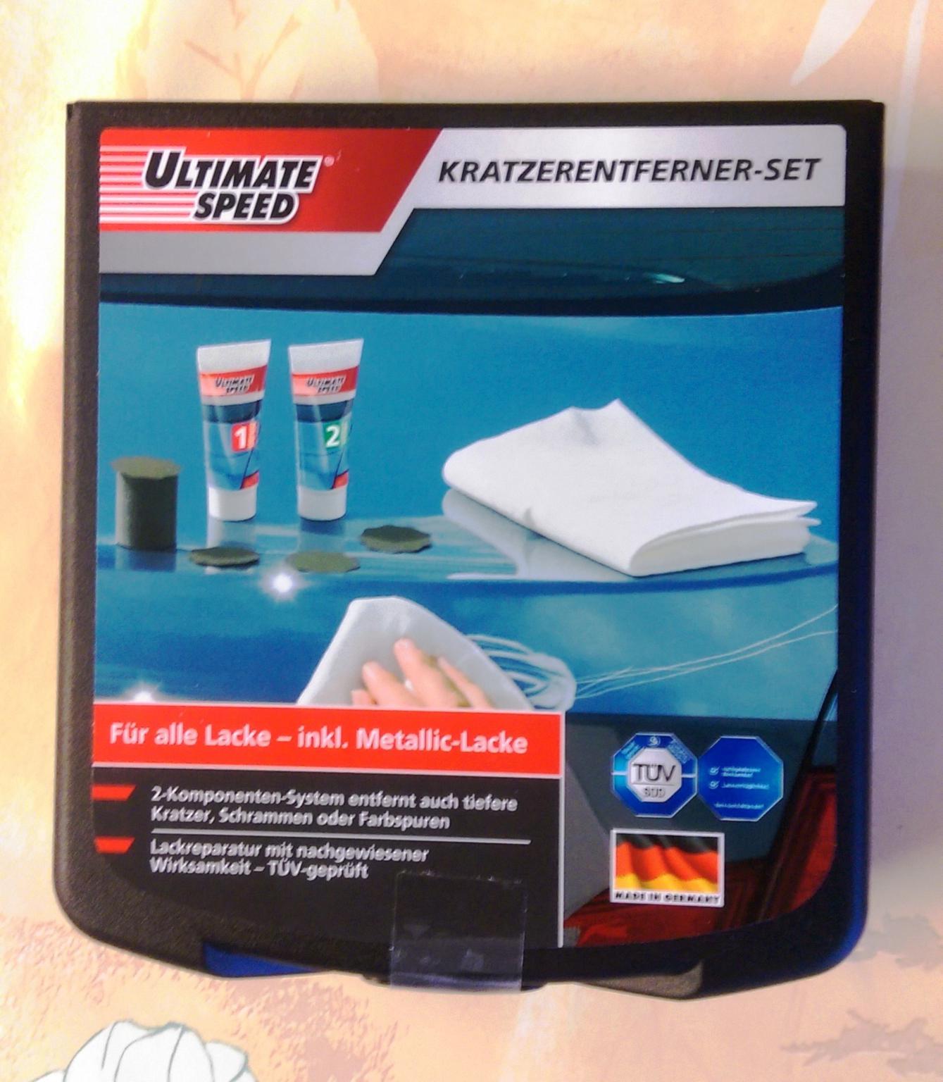 Днес си купих от LIDL за 12 лева един комплект за премахване на драскотини. Според описанието на капака става за нормални и металик бои.