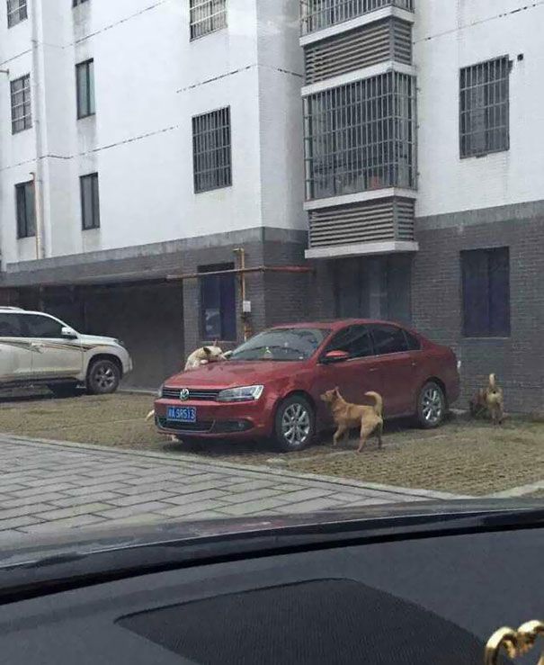 Мъж от китайския град Чунцин получил, едно наистина, странно отмъщение. След като паркира автомобила си на паркинг пред дома си, той ритнал улично куче, което се навъртало около колата.