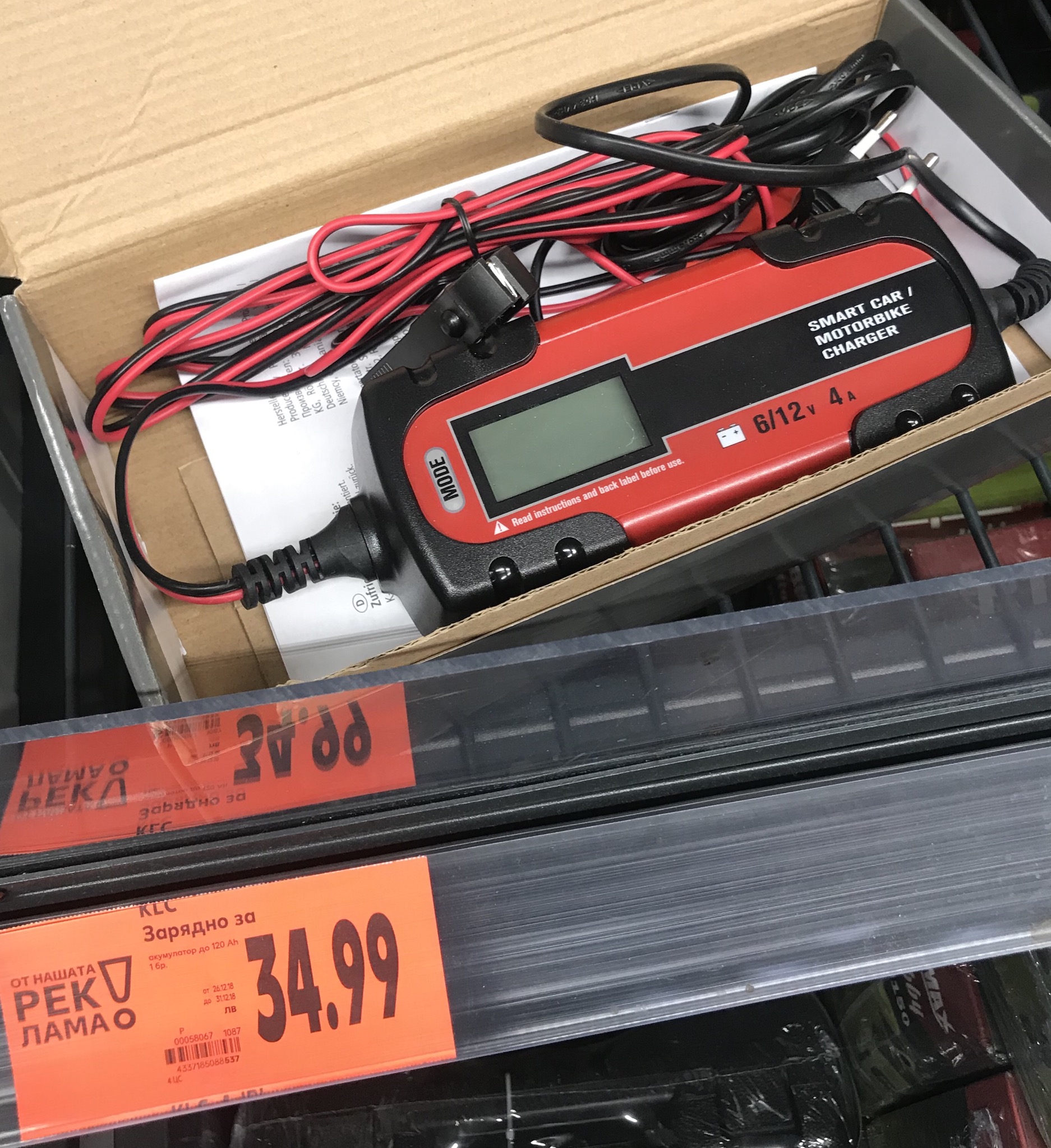 Зарядното не става. Купих си го защото пише че е до 120ач. Когато го включа, започва да зарежда около 15 секунди , след това само мига индикацията за лош контакт на клемата. В събота го върнах, и си взех комплекта бързаци.