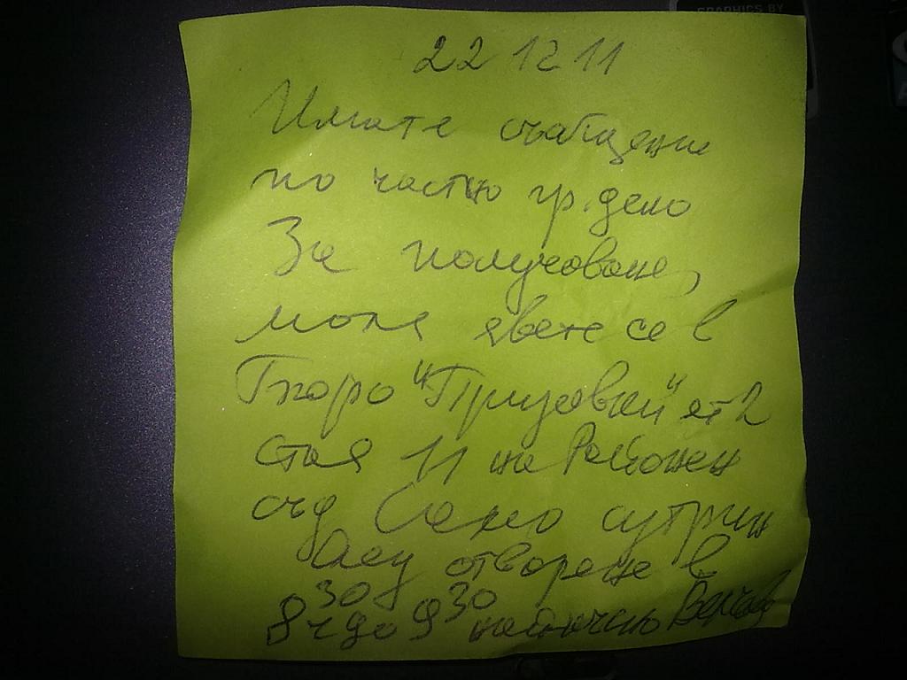 Но днес на 23 ми лепнаха бележка и ме привикаха в съда за дата 22 декември :mrgreen: със саморъчно написана бележка 8 на 8 сантиметра без подпис без печат без име.