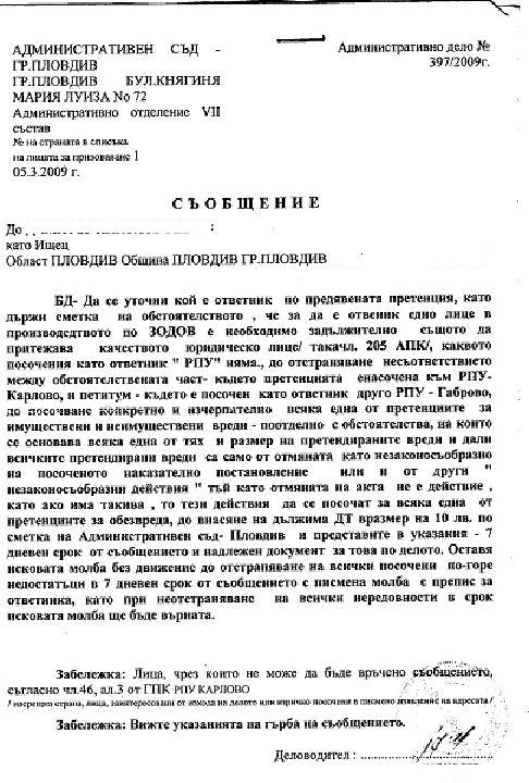Давам ти само пример за съобщение от Съд , копирах някакво от нета за друго е, но модела е същия....