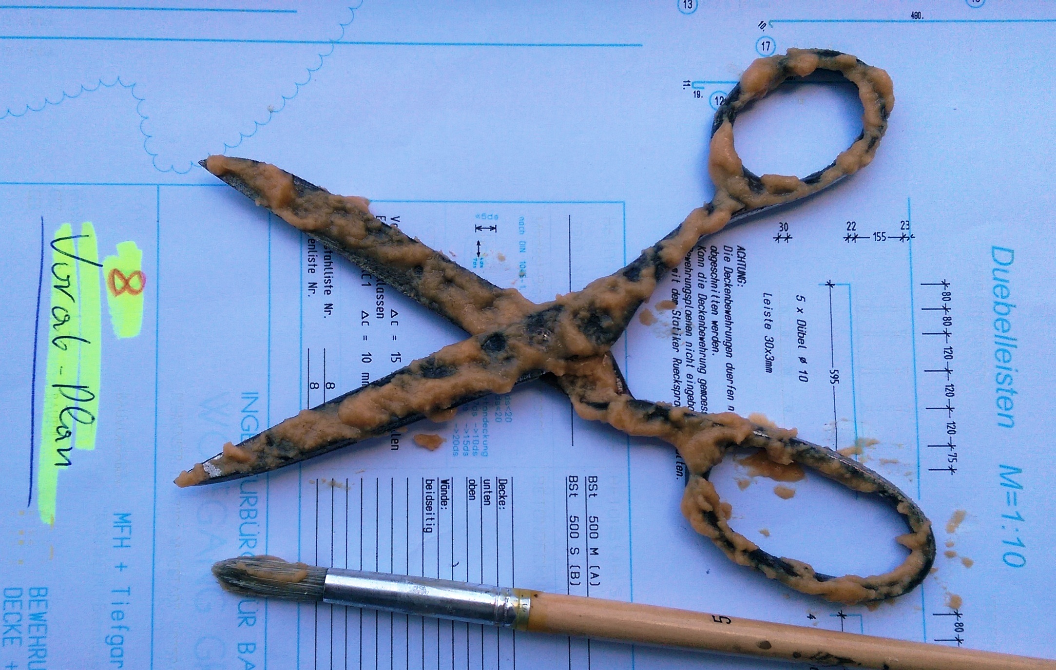 След 1 час, понеже масата започна да съхне, измих обработената ножица с много вода.