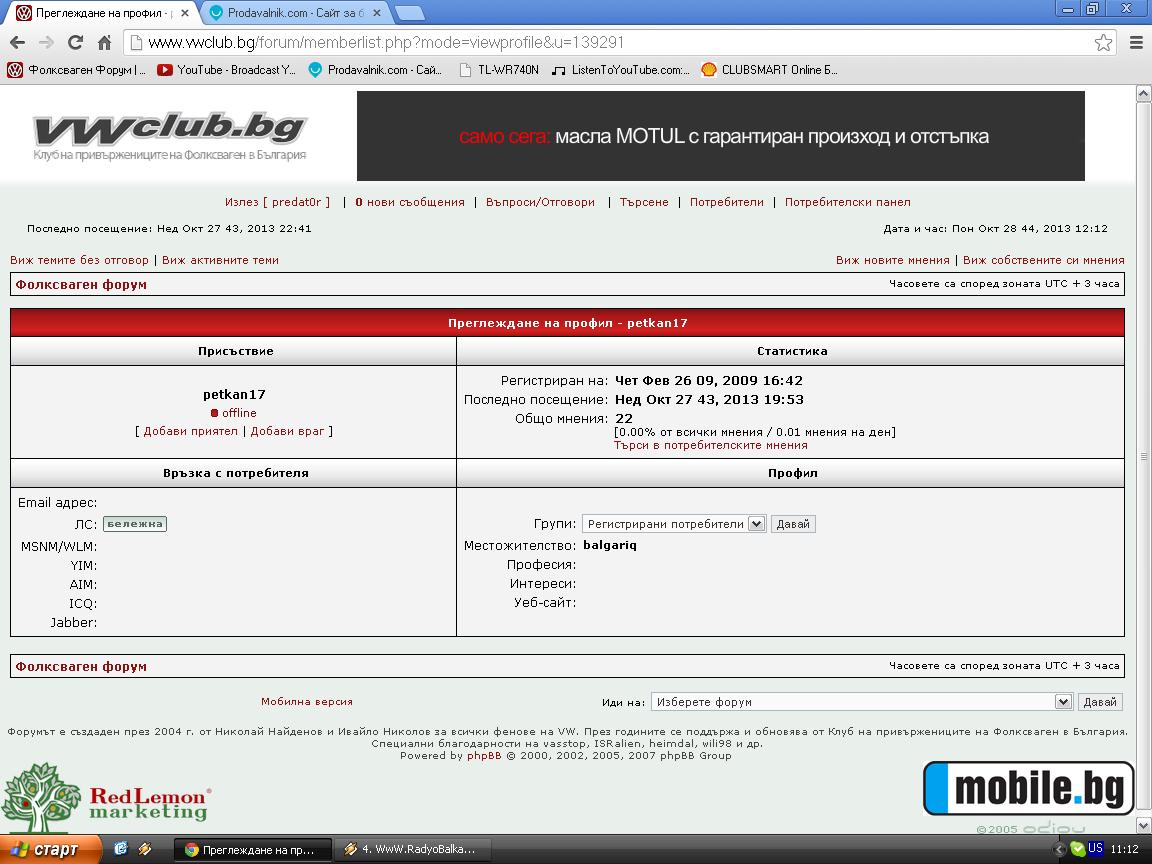 - Регистриран на: Пет 28 авг 2009 17:35