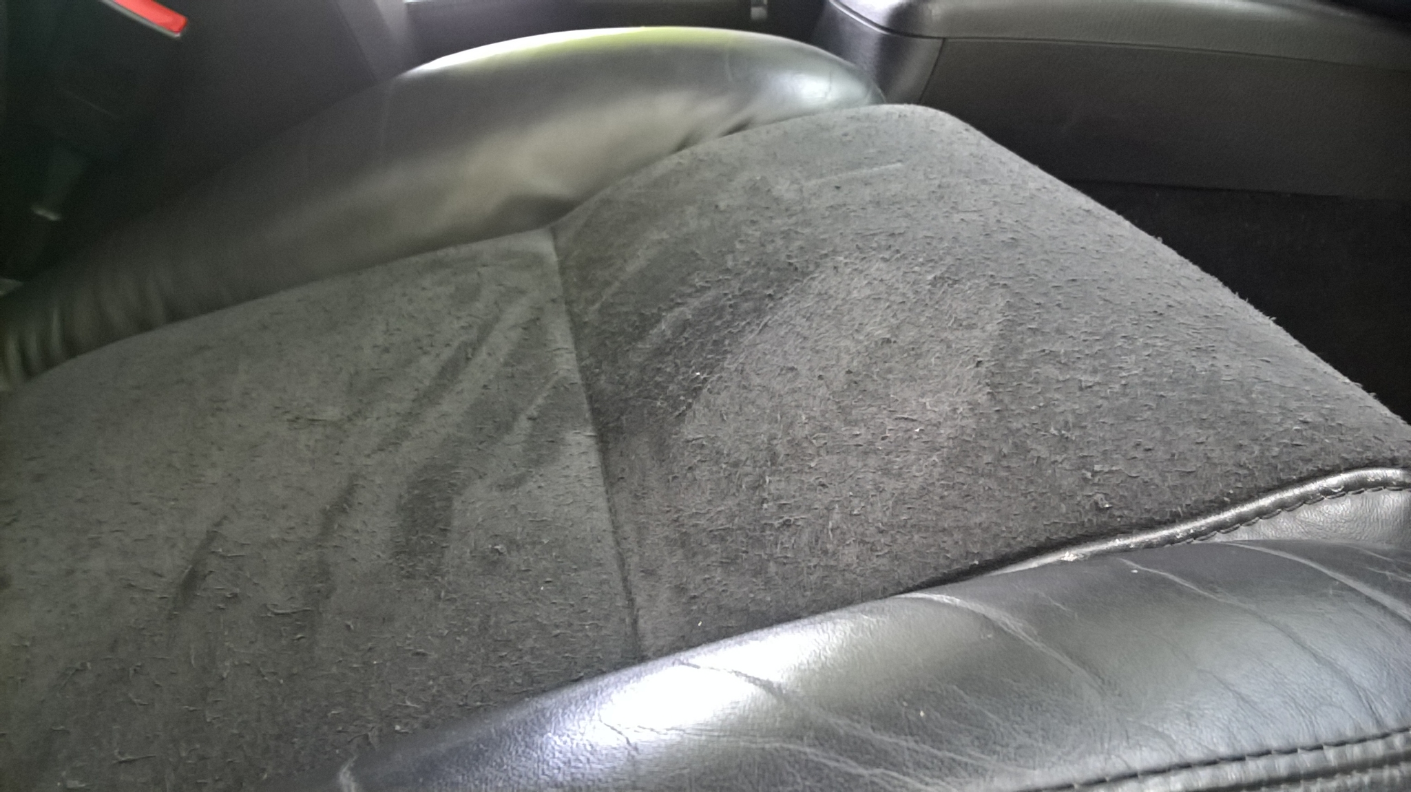 предполагам хората който карат със салони от алкантар,им е ясно след известно време как започва да става на едни нишки и топченце.