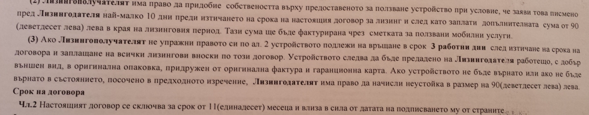Взех телефон на лизинг преди 10 месеца някъде. Обаче, когато подписвах си прочетох договора и следното нещо ми направи впечатление, слагам изрезка за да я разгадаем...