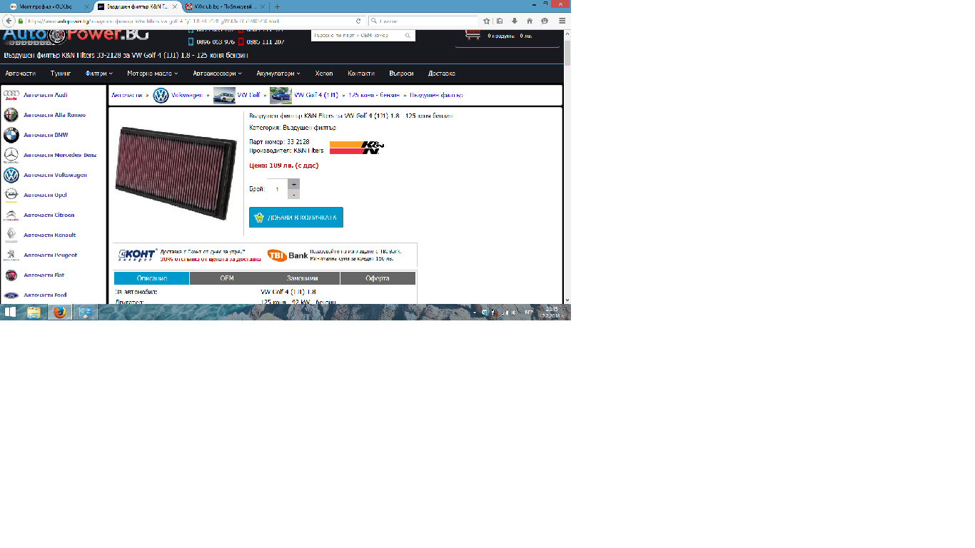 Колеги зарибил съм се да си слагам такъв филтър даже си намерих но вида му ме притеснява малко.той е нов но не е на вид като стандартните филтри и малко ме притеснява да не е менте макар че продавача казва че е K&N.Ето малко снимки да се добие представа.Снимка 1 е панелен филтър който ми излиза масово по саитовете.Снимка 2 е такъв какъвто съм намерил