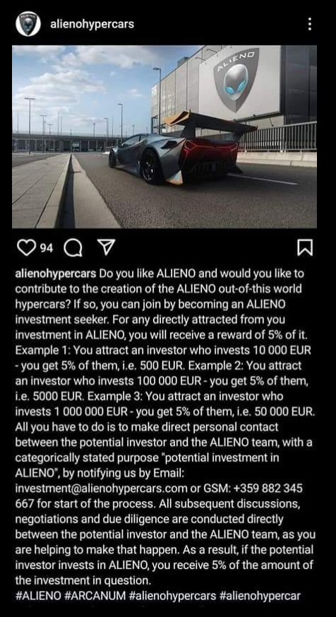 Всички медии раздуха в интернет пространството за това, точно преди избори. Тази "фирма" е стара, това е 3тата кола (реално с проекти до никъде) и нещата, които твърдят са меко казано в научната фантастика. Плюем по колата на Мъск дето ще ускорява под 1 секунда и е под 2000 коня. На българина колата е свързана с крипто валута, преди това има провален проект и това е 3тата кола от "алиено" серията.