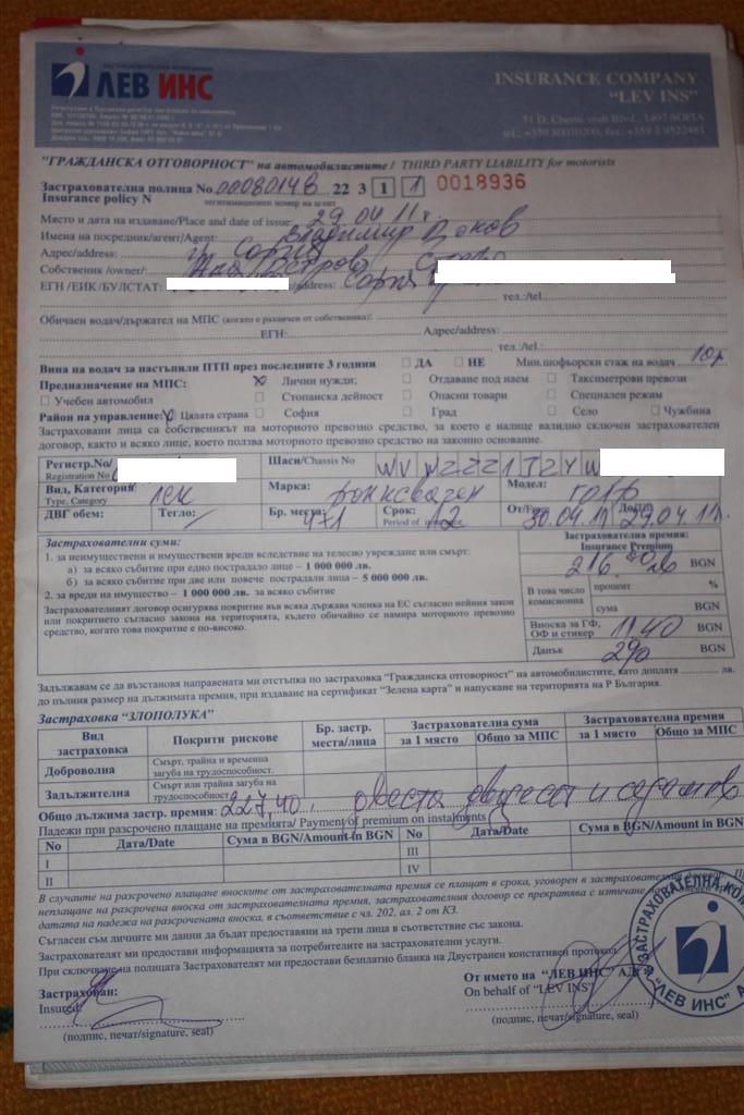 Нека ви разкажа една история за класическа измама със застраховки на Левинс. Измамницата се казва Татяна Димитрова Докова на 47 години. Взехме я във фирмата за касиерка след обява. След няколко месеца установихме че се губят пари редовно от касата, общата сума е около 6000 лв. Като тръгнахме по обратния ред установихме куп злоупотреби. Междувременно се представя като застраховател на Левинс. За първи път стана въпрос като си говорихме за гражданска отговорност в офиса. Предложи на колега да му направи такава с отстъпка. Жената изглежда нормална и улегнала, всекидневно сме си пили кафето и сме обядвали заедно и за това въобще не сме се усъмнили. Направи на колегата застраховка, даде полица и стикери. На полицата пише че застраховката я прави Владимир Доков(сина и), до тук нищо съмнително. Минава време, друг колега си прави каско и гражданска при нея, сумата е над 400 лв. Друг колега вижда че прави отстъпки и той се зашива с гражданска. Последният съм аз преди няколко дни с гражданска отговорност. Като стана ясно че липсват пари от касата и ще бъде уволнена дисциплинарно и дадена на съд, говорейки си с колегите се сетихме за застраховките. Обадихме се при застрахователя и се оказа че въобще не отчитала парите. На някои колеги не ги е отчела даже и след като са минали 5 месеца което е доста необичайно. Парите обещава да ни ги върне всеки ден(по телефона), кълне се във всичко че имало грешка и полиците се регистрирали при застрахователя със закъснение. Според застраховатяля брокерите би трябвало да отчитат парите до 7 дни, и до още 15 дни застахователя да ви отрази в гаранционния фонд. Всекидневно и се обаждахме по телефона и всеки път обещаваше да дойде утре и да решим проблема, естествено не идваше въпреки че все още не беше уволнена и се водеше на работа. При всяко обаждане твърдеше че не била в София. Последния път излъга че е в Плевен, като предложих да пратя познат от града при нея за парите си намери друго оправдание. След като видяхме че пари няма да върне снимахме всички полици и отидохме вкупом до офиса на компанията. Те записаха номерата и казаха че ще търсят измамницата и признават полиците за истински. Самите полици са си техни оригинални, как се сдобива с тях за нас е неизвестно. Идеята е че при проблем трябва да се обадиш първо на брокера и тя да отчете полицата със задна дата. Явно си има някакви начини за въпросната далавера. Вече задължително трябва да имаш гражданска отговорност без значение дали си караш колата. Моя колежка получи писмо че няма въпросната застраховка въпреки че си я е платила на въпросната госпожа и има полица и стикер. Имайте предвид че е доста убедителна, миловидна, насълзяват и се очите и прочие театри. Пуснали сме си жалби при застрахователя и в полицията. Имайте едно на ум на кого давате пари и за какво. Търсейки в google попаднах на следното: