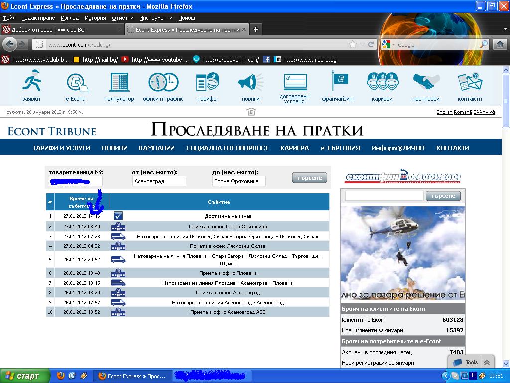 shako9793 написа:Колеги внимавайте с колегата maikalcho миналия ден на 26.01.2012г. му пратих по еконт за 20лв едни машинки за ел регулиране на фаровете за мк3.... Евентуално на другия ден той си ги получи... Над вечер ще приложа снимка...... И към 24часа аз получавам телефонно обаждане етествено не дигнах по това време и му затворих и си изключих телефона сутринта като си включих телефона получих съобщение... Цитирам "Защо ми затварящ пратил си ми счупена машинка мошенник" Това незнам сега дали е станало по време на превоза нещо с пратката или колегата след като си взимал пратката и си искал да си го монтира го е счупил и ме обвинява мен че съм го изработил... По принцип машинките ги испратих е един плик и плика го сложиха е тяхна кесия.. Може и там да е станало нещо но в никакъм случай не съм му пратил счупена мащинка.... А в същност съм му пратил 2-те машинки комплекта... А по въпроса с еконт не знам дали имаше опция за преглед по принцип знаят ме че винаги пращам с опция за преглед и вече не обръщам внимание на тези неща като излезна да гледам на бележката.... Прилагам снимка в колко си е получил колегата пратката и в 24часа презноща ми се обажда много ясно че няма да вдигна презноща телефона и то на непознат.... Аз от къде да знам че колегата от 17:16часа до 24часа какво е правил с тези машинки дали е искал да ги монтирал и едното го е счупил... Внимавайте с maikalcho много ама много