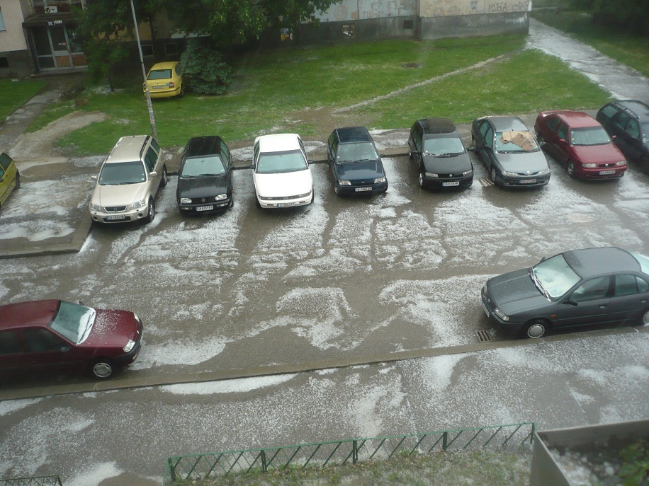 Вали много силно, но градушката е ситна