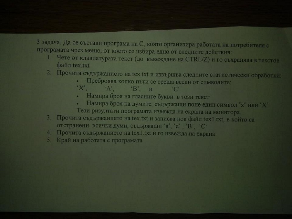 Здравейте, колеги! Трябва ми помощ за една курсова работа по програмиране в ТУ София! Трябва ми кода на това условие до края на седмицата. Знам, че времето е ограничено, но нищо не вдявам и реших да потърся помощ тук! Пък аз ще почерпя за услугата!
